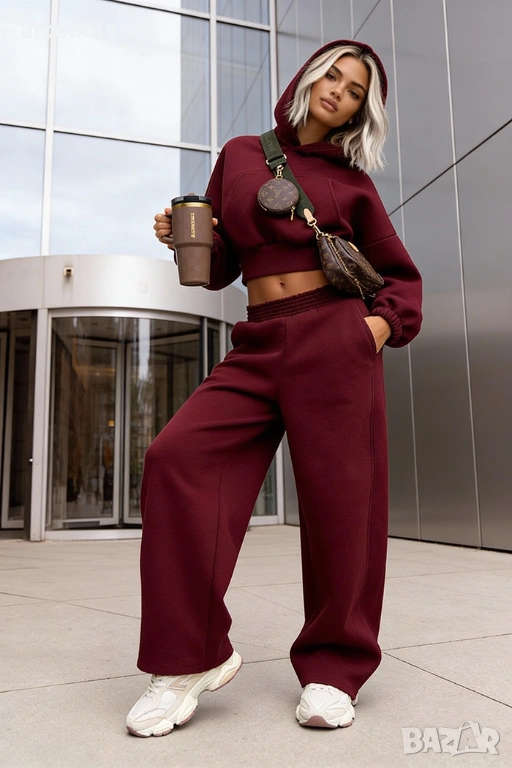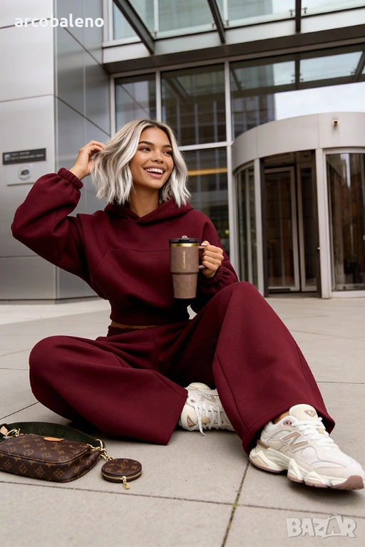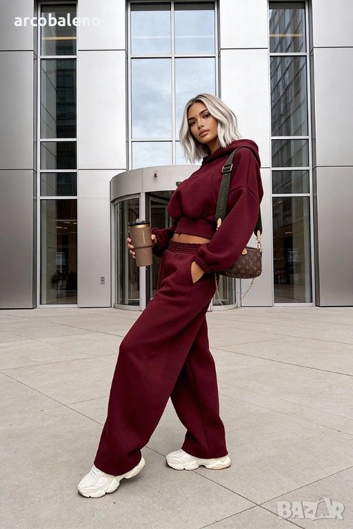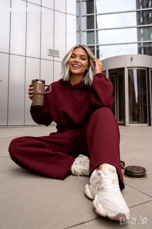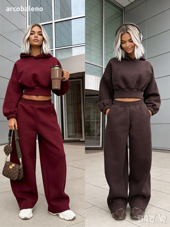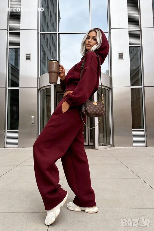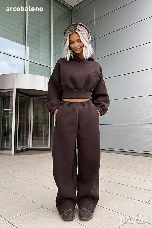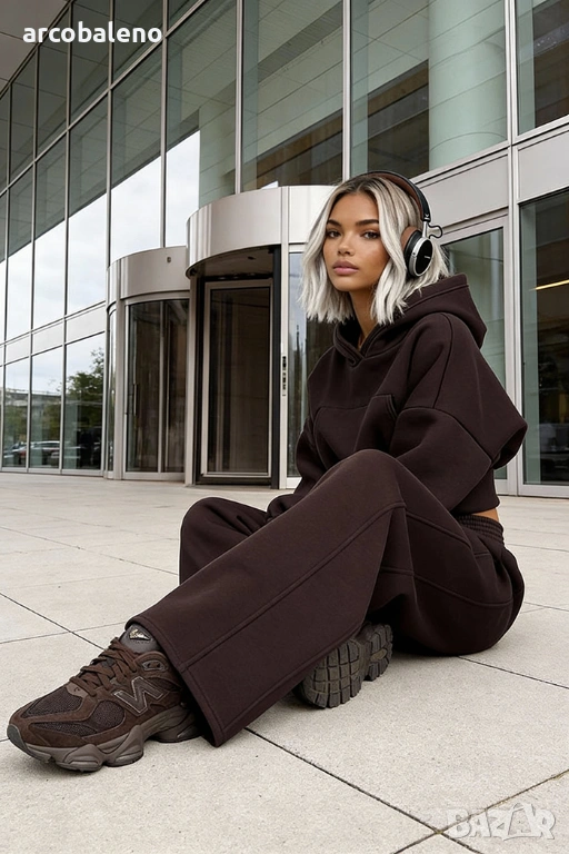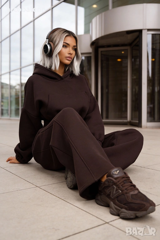 Широки, овърсайз панталони Balloon и суитшърт с голяма качулка и връзка на талията. Най-удобният, ултра голям и дебел – точно това, което обичате най-много!