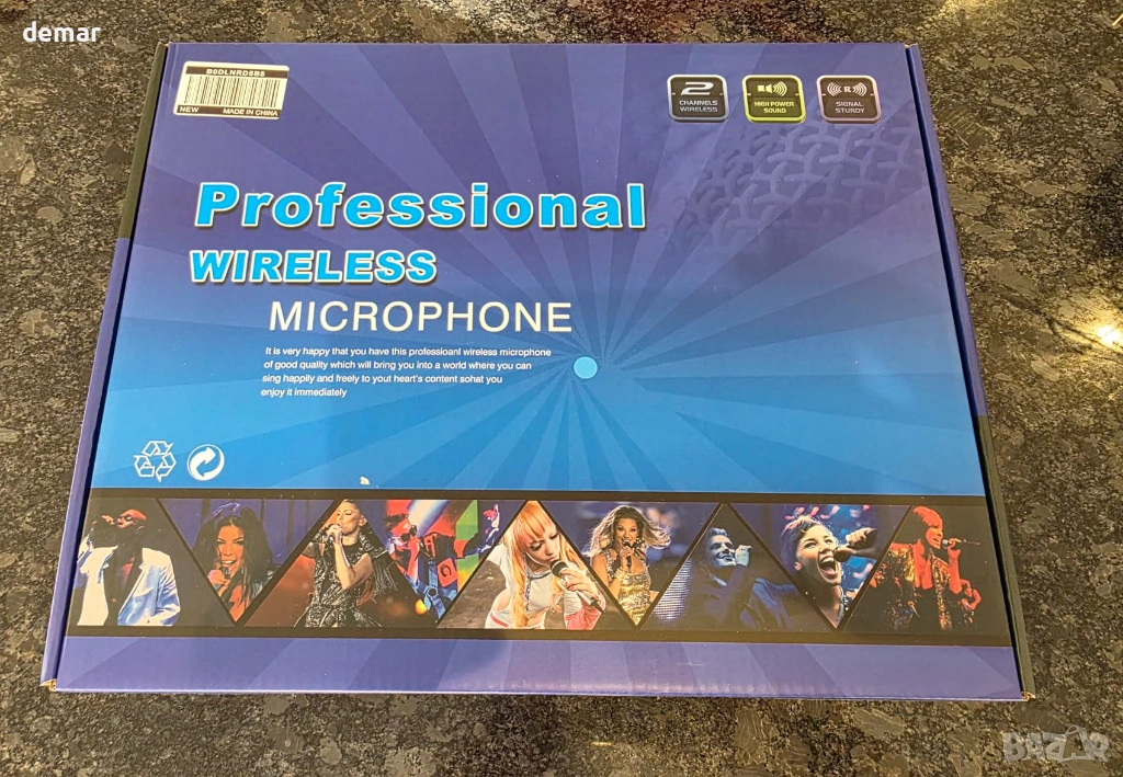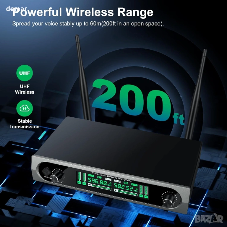 Безжична UHF микрофонна система с два динамични микрофона, до 60 м