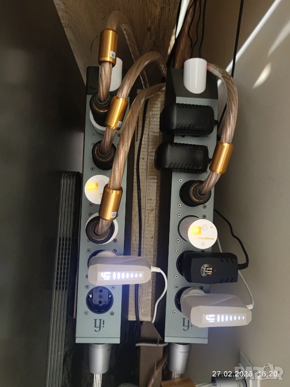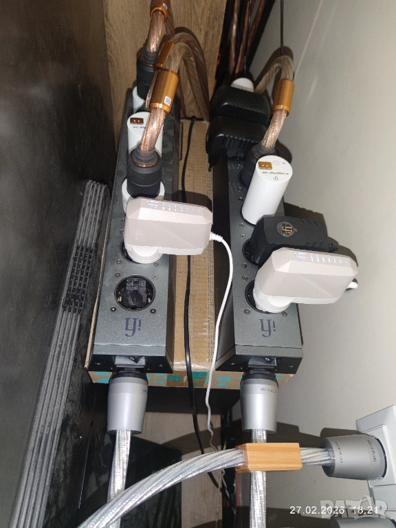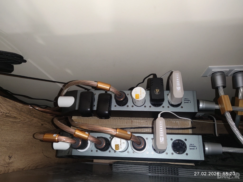 Продавам ifi power station, hi-fi разклонител с активно шумоподтискане: Active Noise Cancellation 2 /намалява шума в електрическата мрежа с > 40dB ( над 100 пъти) / и защита от пренапрежение. Има светлинна индикация за правилен поляритет на щепсълите и букса за заземяване на апраратурата. Закупен е на 05.01.2026г. с двугодишна гаранция. Без визуални и функционални забележки. Станцията се справя страхотно с изолирането на шума от електрическата мрежа, както и с изолацията между включените в нея уреди. Имам 2 бр. но поради закупуване на нов кондиционер единият вече няма да ми е нужен.