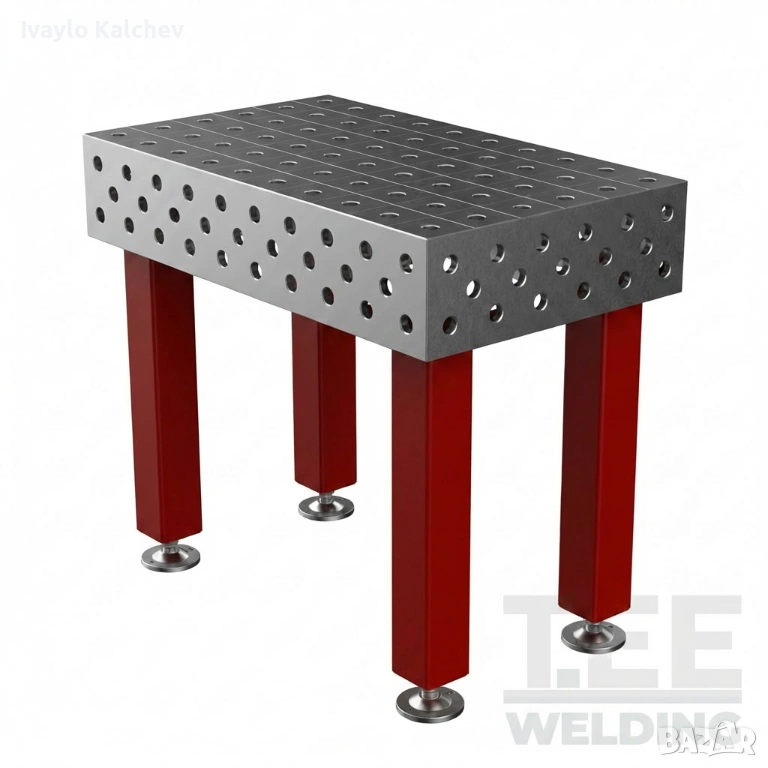 Заваръчната маса е изработена от масивна стоманена плоча с дебелина 15 мм, подсилена с ребра за максимална устойчивост и минимални деформации при натоварване.
