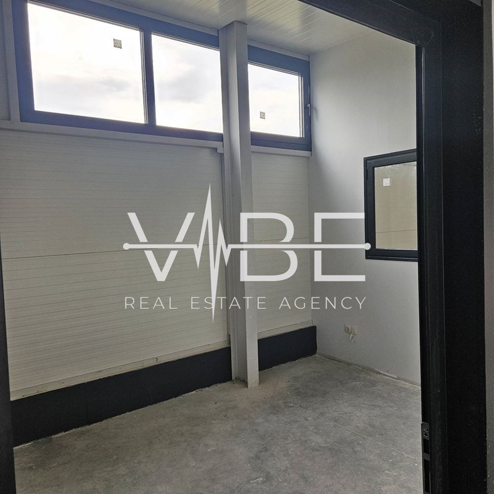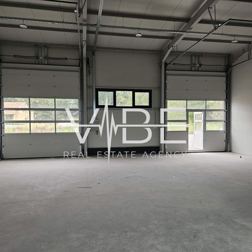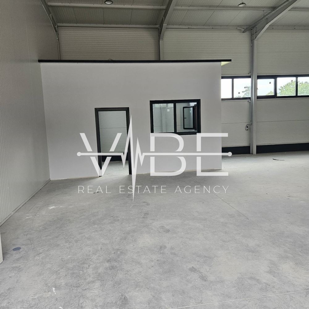 Помещението се състои от: складово помещение с големина от 150 кв.м, с работна височина 5.50 м. Подова настилка-шлайфан бетон. Достъп посредством две секционни врати висок клас, с размери 3.50 м/4.50 м височина, като едната е с проходна пешеходна врата, а другата с автоматика за вдигане. Има естествена светлина осигурена от най-висок клас дограма - ETEM 75, с трислоен стъклопакет ( 4 сезона + К стъкло) . В помещението има изграден офис с големина от 16м2, със собствена баня с тоалетна. Има изградено LED осветление на 3 отделни кръга , осветление пред всяка врата поотделно, монтирани контакти и отделни табла за офиса . Сградата е изградена с 10 см термопанели. Достъпът е ограничен и е с видеонаблюдение .