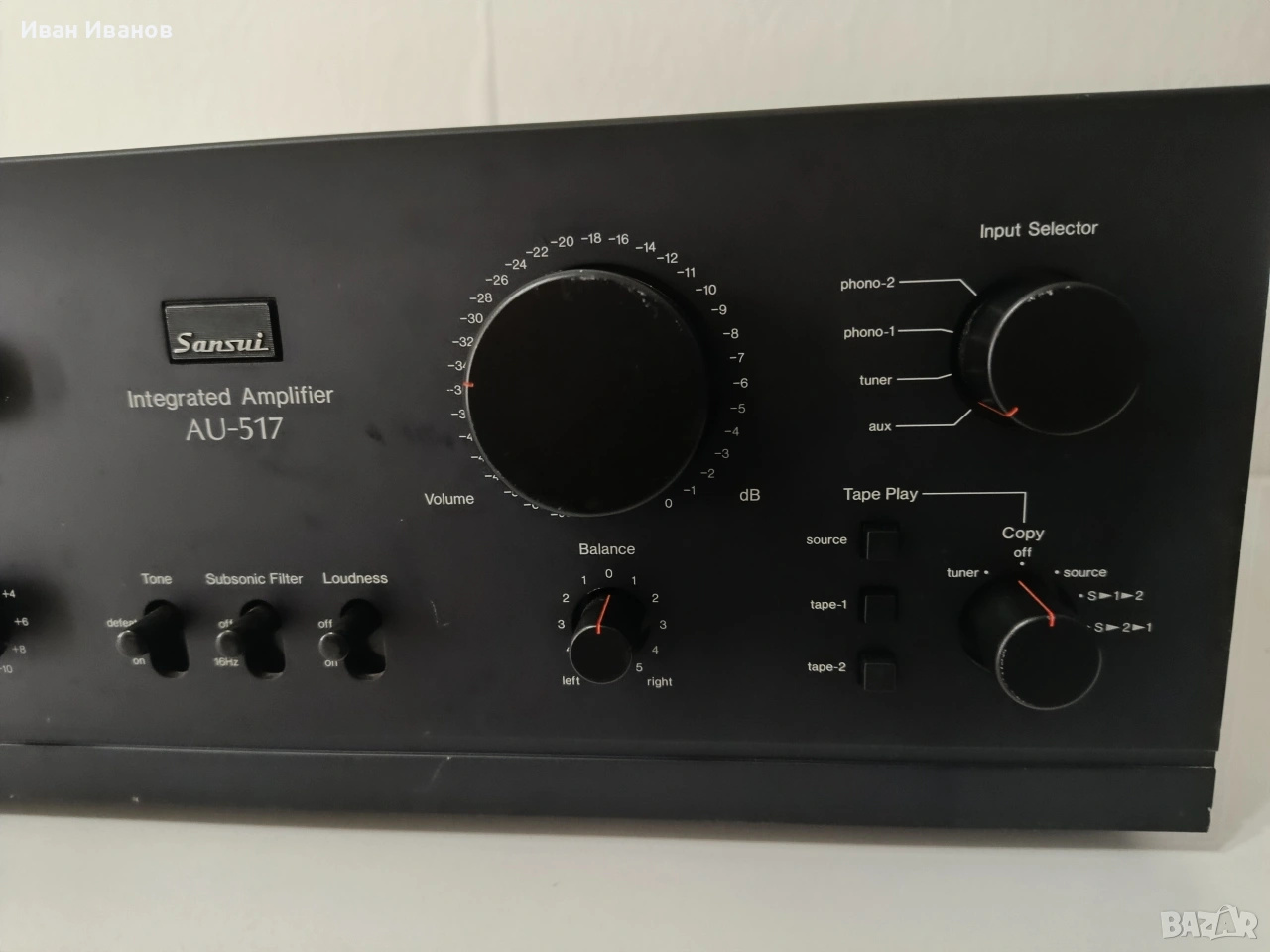 усилвател Sansui AU-517, който се намира в отлично техническо състояние. Купуван е от Великобритания.