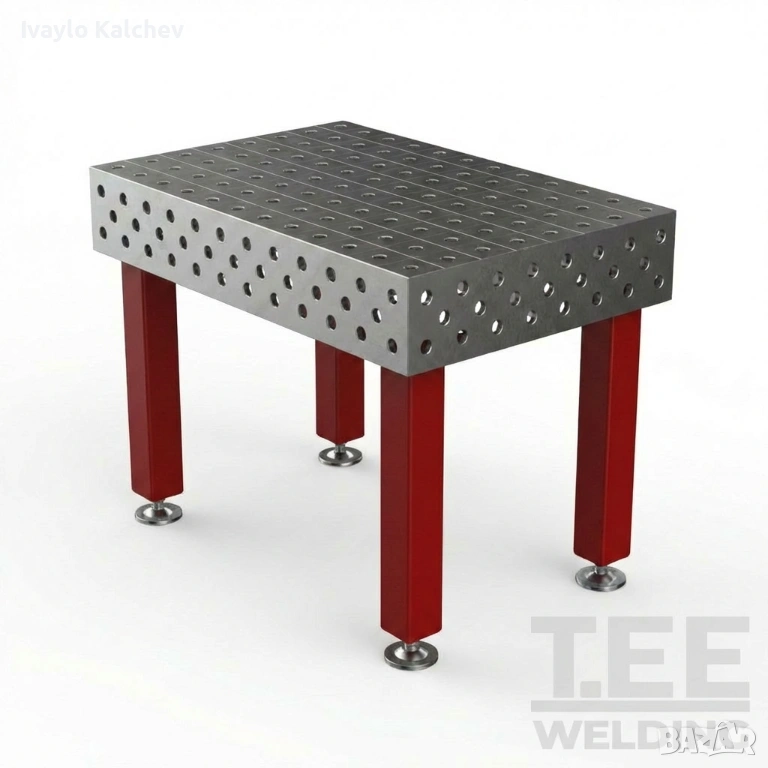 Заваръчната маса е изработена от масивна стоманена плоча с дебелина 15 мм, подсилена с ребра за максимална устойчивост и минимални деформации при натоварване.