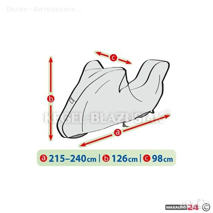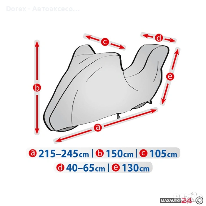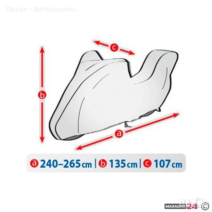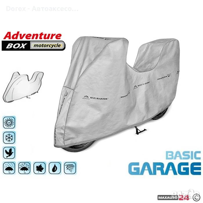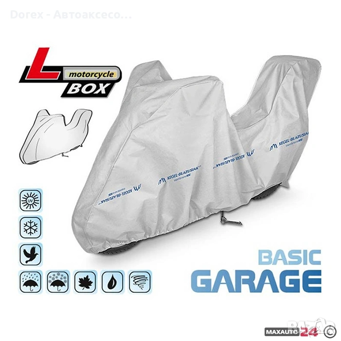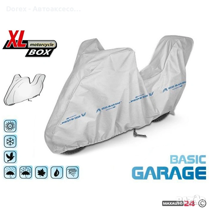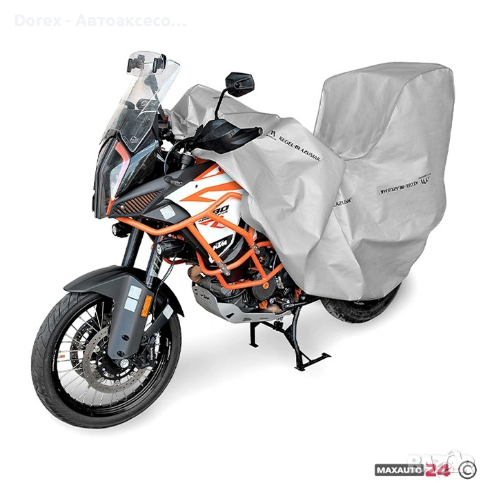 покривало за мотор, което защитава от сняг, дъжд, вятър, UV лъчи, прах, листа, птици и други замърсявания. Мека вътрешна мембрана пази боята и детайлите на мотоциклета, а ластичните ленти и връзките осигуряват стабилно закрепване. Лесно за съхранение и пренасяне.