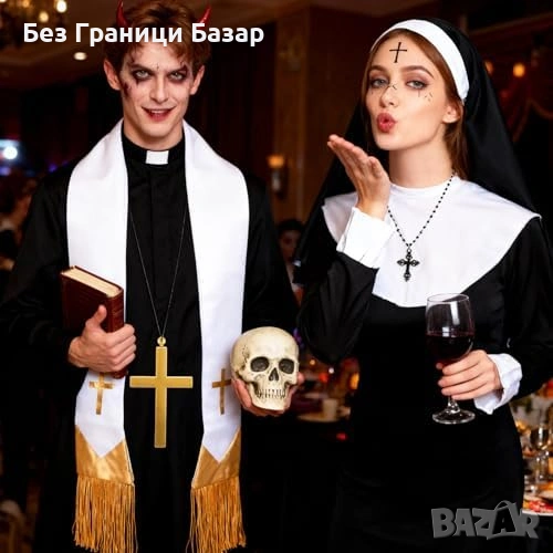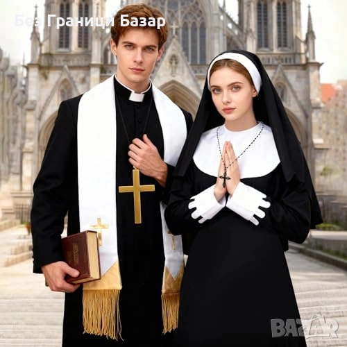 Комплект 5 части аксесоари за двойки – тематична „монашеска“ визия за карнавал и маскарад
