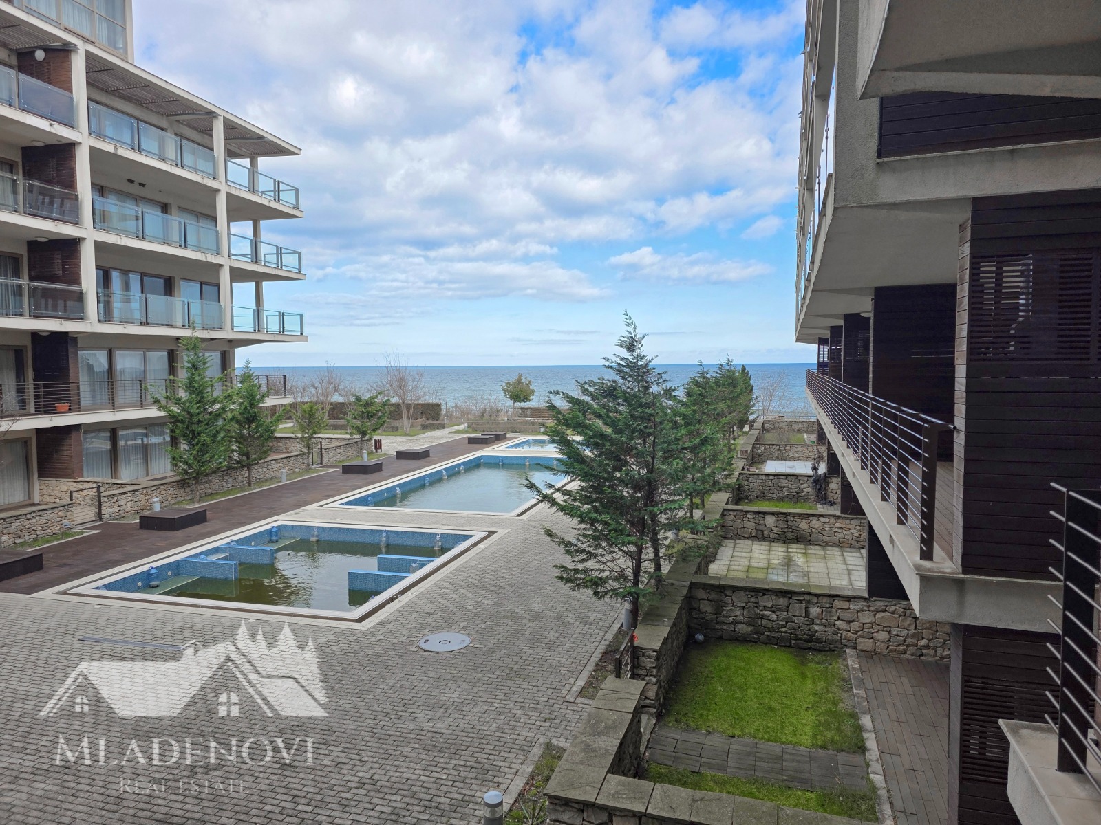 Имаме удоволствието да Ви предложим за продажба просторен двустаен апартамент с ГЛЕДКА МОРЕ в луксозен комплекс на първа линия на морския бряг. Ваканционният комплекс Yoo е от затворен тип в крайбрежната зона на гр. Обзор, сред обширен парк, потънал в зеленина, с широка морска панорама. На територията на комплекса са изградени 4 басейна, детски басейн, детски площадка, тенис-кортове, фитнес-център, СПА-център, магазин, кафене и ресторант. Достъпът до плажа е лесен и удобен. Имотът се намира на втори жилищен етаж и се състои от просторна всекидневна с кухненски кът, спалня, голяма чудесно поддържана тераса, обща за двете стаи и голяма баня с вана и тоалетна. Стаите са с великолепни френски прозорци, от които се открива красива гледка към морето, басейна и впечатляващи зелени площи. Продава се с наличното обзавеждане и оборудване. Към апартамента има и избено помещение с площ от 5кв.м. Агенцията съдейства за отпускане на ипотечен кредит за финансиране покупката на този имот, както и безплатно юридическо обслужване през целия процес на сделката.