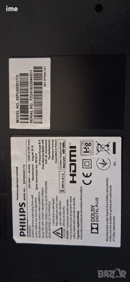 Philips 55PUS6501/12 на части. 715G7772-M0E-B00-005K LC550DQF-FHA1-8B1 715G312-P01-000-002S → Обява 53646308