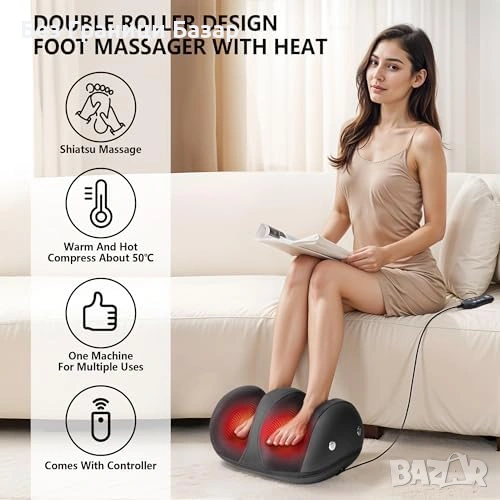 2 режима на масаж: ролковo месене на стъпалата + симулиран акупресурен масаж