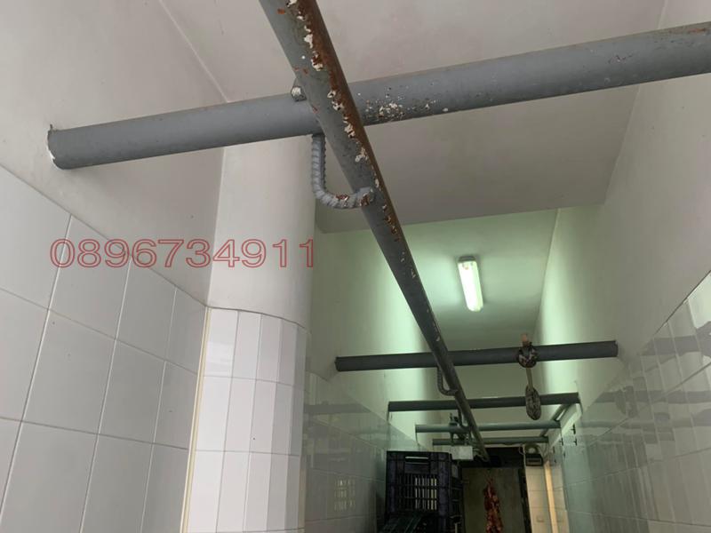 Промишлено помещение с търговска част. Помещението има 3 входа/изхода. Към настоящият момент се ползва като транжорна с хранителен магазин, но може да се използва и с друго предназначение. Има вход за търговската част, в която има няколко хладилни камери, дълга хладилна витрина и рафтове. От търговската чат има директен вход към промишленото помещение и към другия вход, който е с верижен път и е устроен за вкарване на трупното месо. Верижния път влиза в една от камерите, в която се съхранява месото. В промишленото помещение има две малки помещение, обособени за подправки и други неща. На етажа има помещение, което е предвидено за офис и такова, което е обособено като съблекалня и столова за персонала, както и санитарен възел. От промишленото помещение има стълбище и асансьор с които се стига до склада, който се намира под самото помещение, в който склад също има огромна камера за съхранение на продукти. Там има обособено помещение за сушене на мезета, за пушене и печене на меса. Помещението се продава заедно с 6 хладилни камери, работни маси и 3 метрова витрина в търговската част. Цена за гореописаното - 260 000 евро