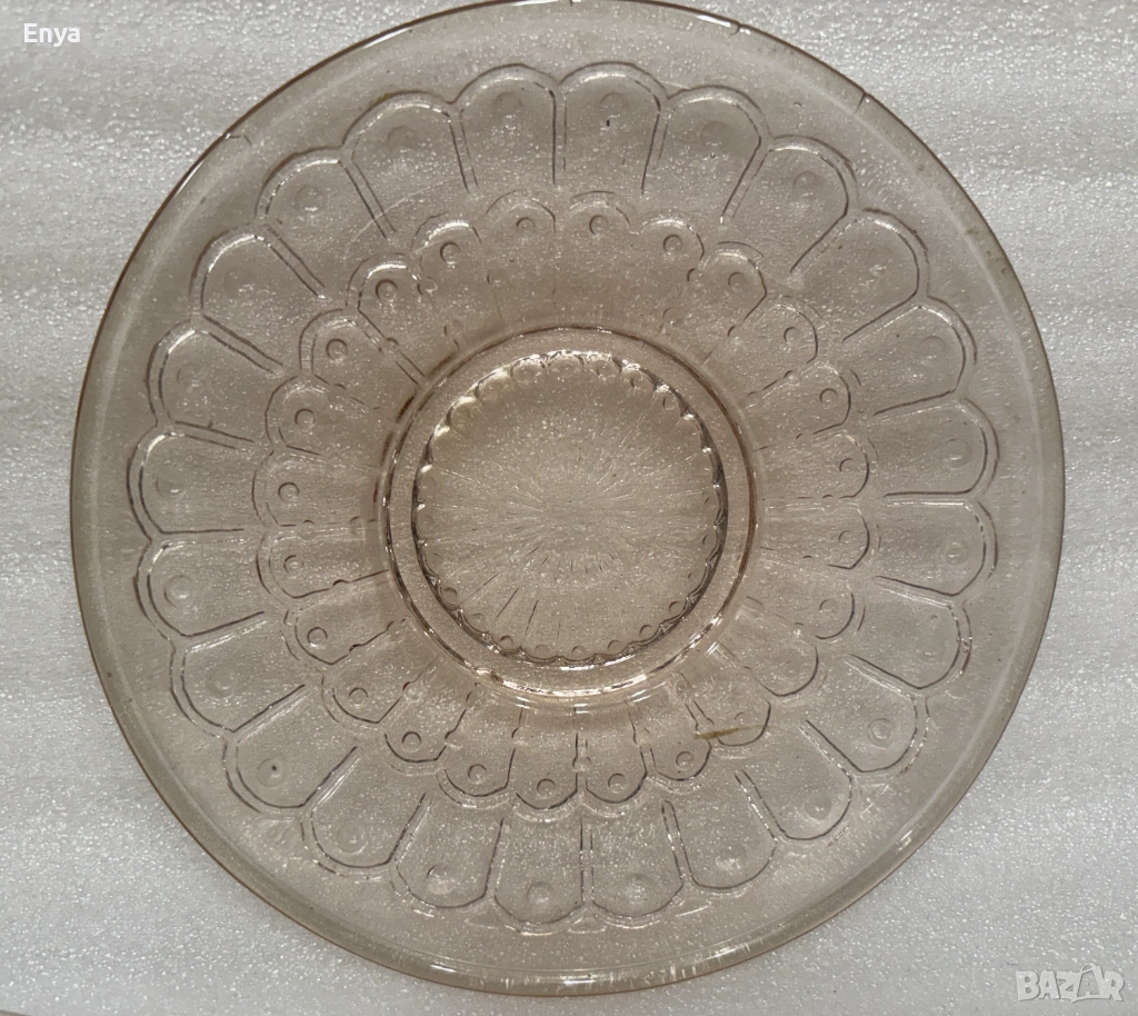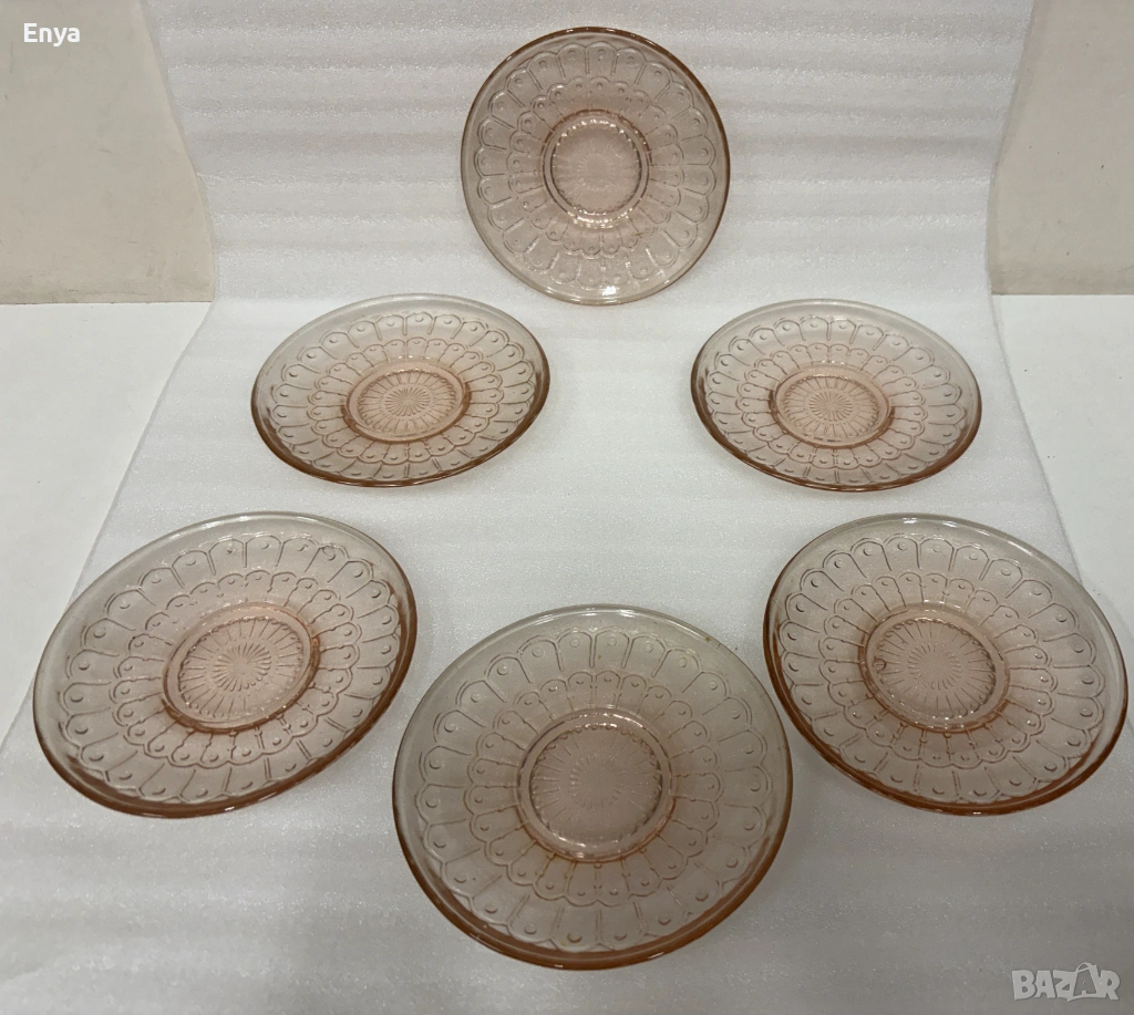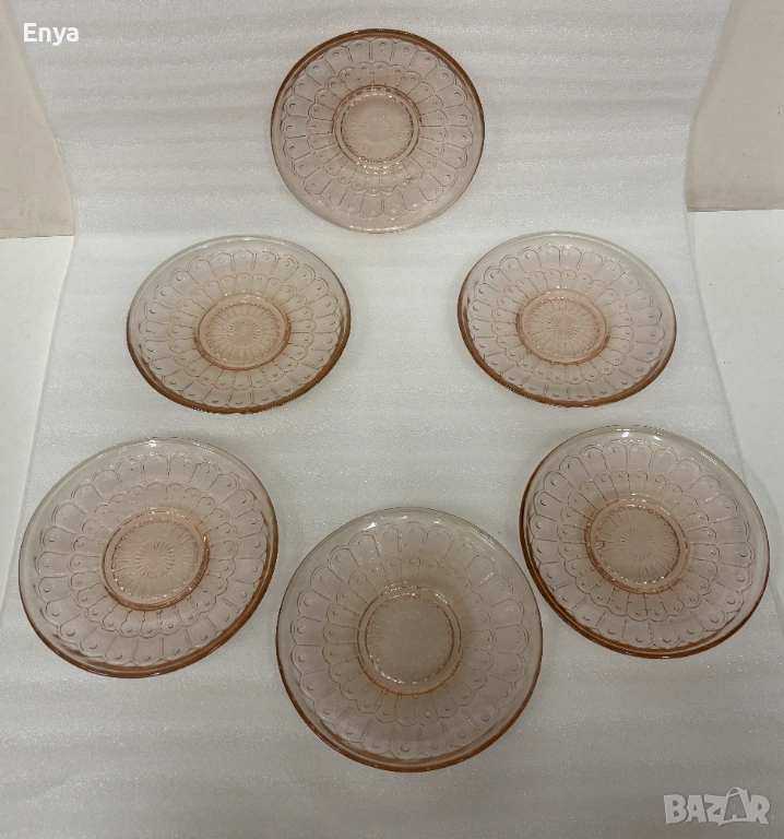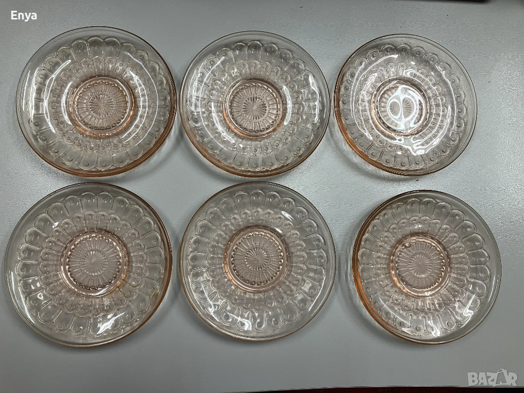 Предлагам 6 бр. десертни чинии, цвят "розов карамел"- стъклени