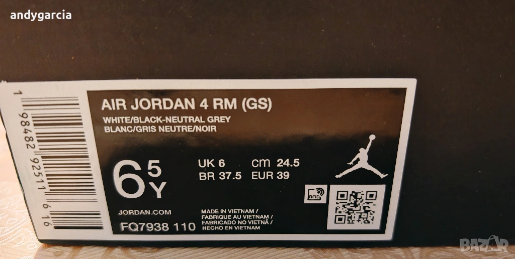 Nike Air Jordan 4 RM 39.0 ти номер или 24.5 см стелка, чисто нови с кутия 100% оригинални