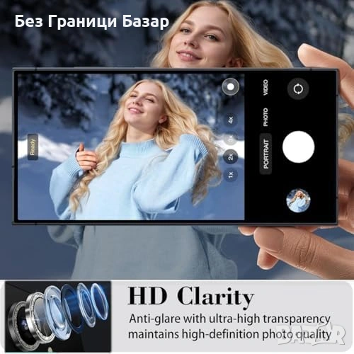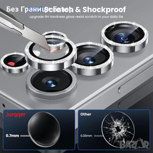 Нов S26 Ultra протектор лещи 9H сапфир + алуминиев ринг HD AR Защита камера Самсунг