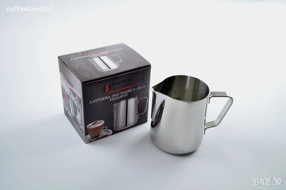 Професионална каничка за мляко, предназначена за приготвяне на капучино, лате и други кафе напитки. Изработена от висококачествена неръждаема стомана 18/10, тя гарантира дълготрайност, устойчивост и отлична хигиена при ежедневна употреба.