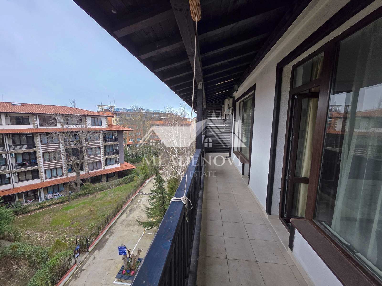 Жилището се намира в комплекс от затворен тип, на 400 м. от плажната ивица и Аквапарка на гр. Приморскко. Отличава се с много зеленина, три басейна, детска площадка и барбекю. Апартаментът е разположен в един от по-новите корпуси на комплекса, намиращ се на четвърти, непоследен етаж с асансьор и с чудесно поддържани общи части. Състои се от просторна всекидневна с кухненски кът, самостоятелна спалня, две тераси, баня с тоалетна и коридор. Апартаментът е изключително светъл и слънчев. Продава се с цялото налично обзавеждане и оборудване. Подходящо е, както за целогодишно ползване, така и за покупка с цел отдаване под наем или нощувки. Таксата поддръжка е в размер 19 Евро/кв.м. годишно. Агенцията съдейства за отпускане на ипотечен кредит за финансиране покупката на този имот, както и безплатно юридическо обслужване през целия процес на сделката.