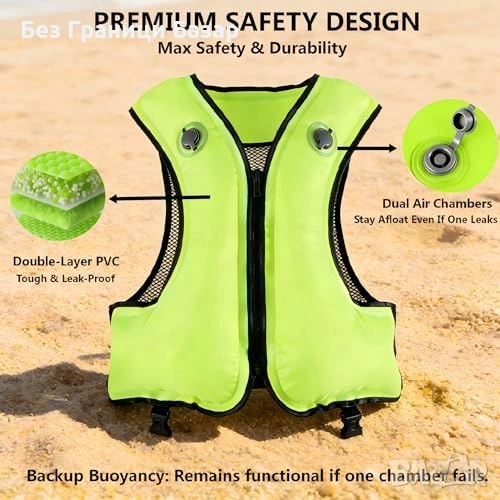 Нова Високовидима надуваема жилетка 100 кг за каяк сърф гмуркане море