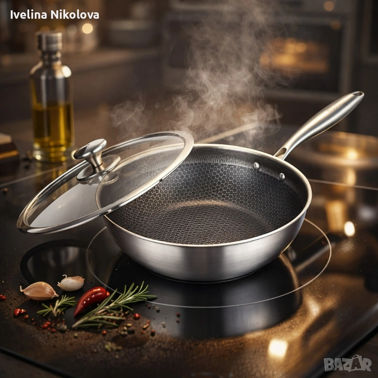 Уок тиган с капак Goldmann Fusionhex Pro GM 1128-28WK, 28x8.5 см., Незалепващо Покритие, Неръждаема → Обява 53646742