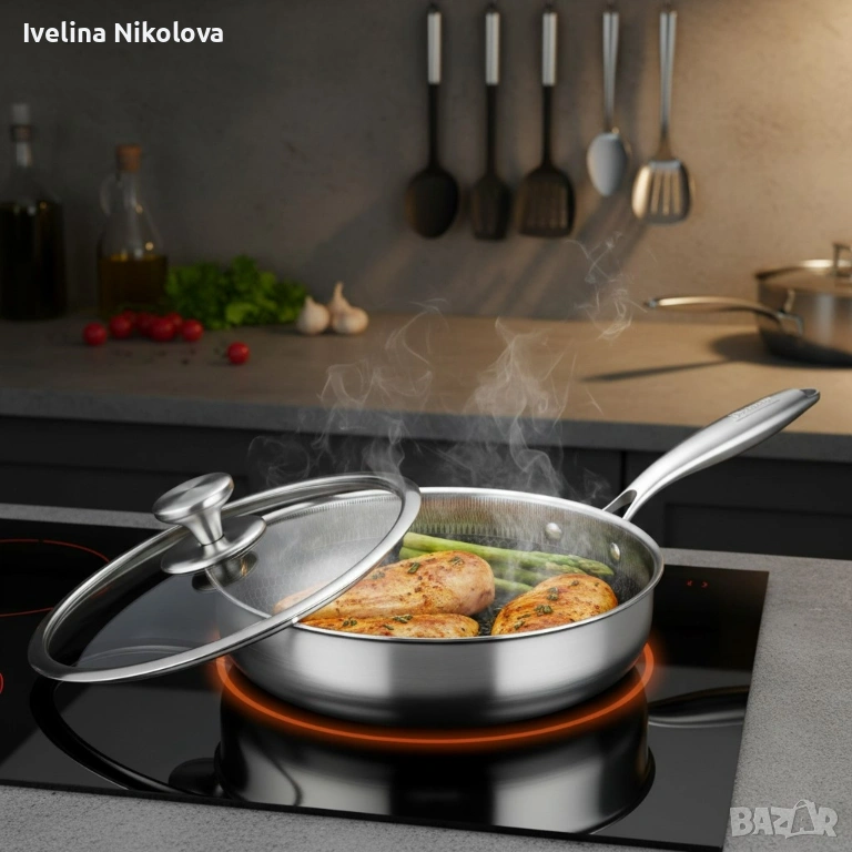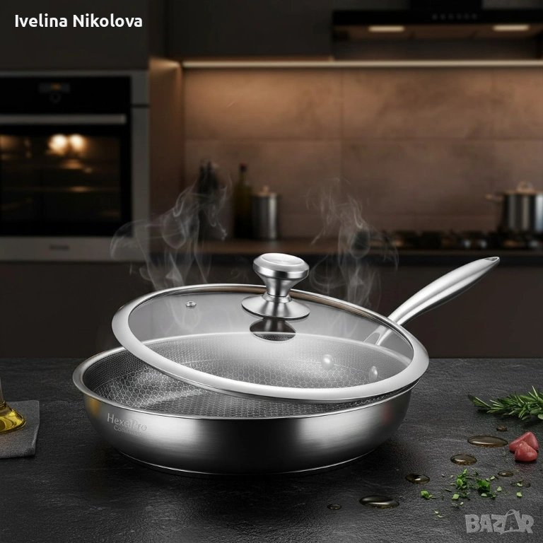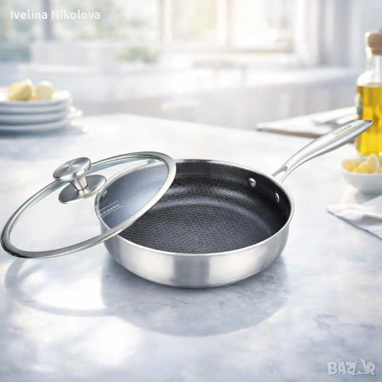 Тиган с капак Goldmann Fusionhex Pro, Дълбок, Незалепващо Покритие, Неръждаема стомана → Обява 53646768