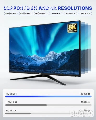 Поддържа HDMI 2.1: 8K*60Hz и 4K*120Hz / 240Hz за много плавна картина