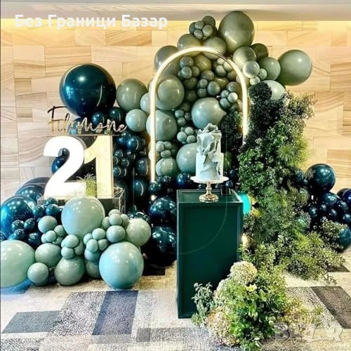 Комплект арка/гирлянд от 126 балона в тъмнозелено, златно, салвия