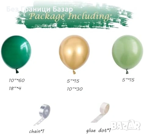 Нов Комплект балони за арка зелено/златно 126 броя рожден ден украса