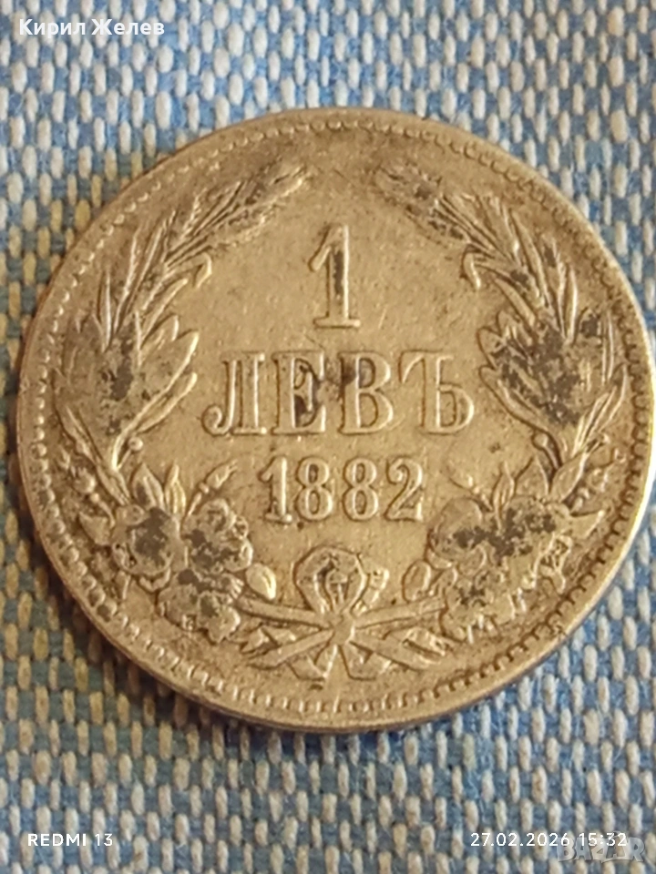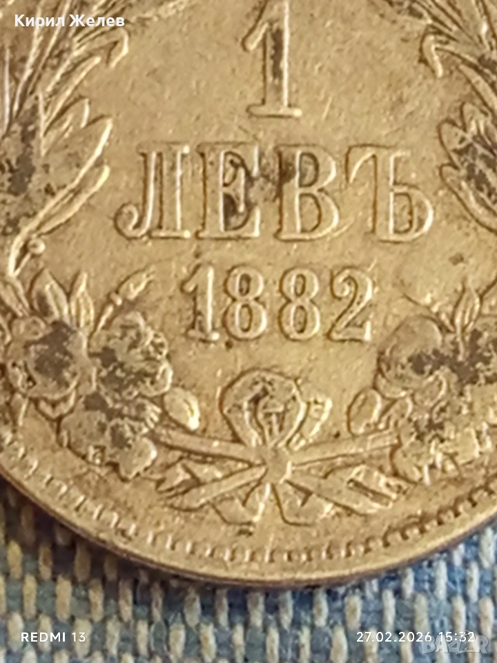 Сребърна монета 1 лев 1882г. Княжество България Княз Александър първи за КОЛЕКЦИЯ 52981