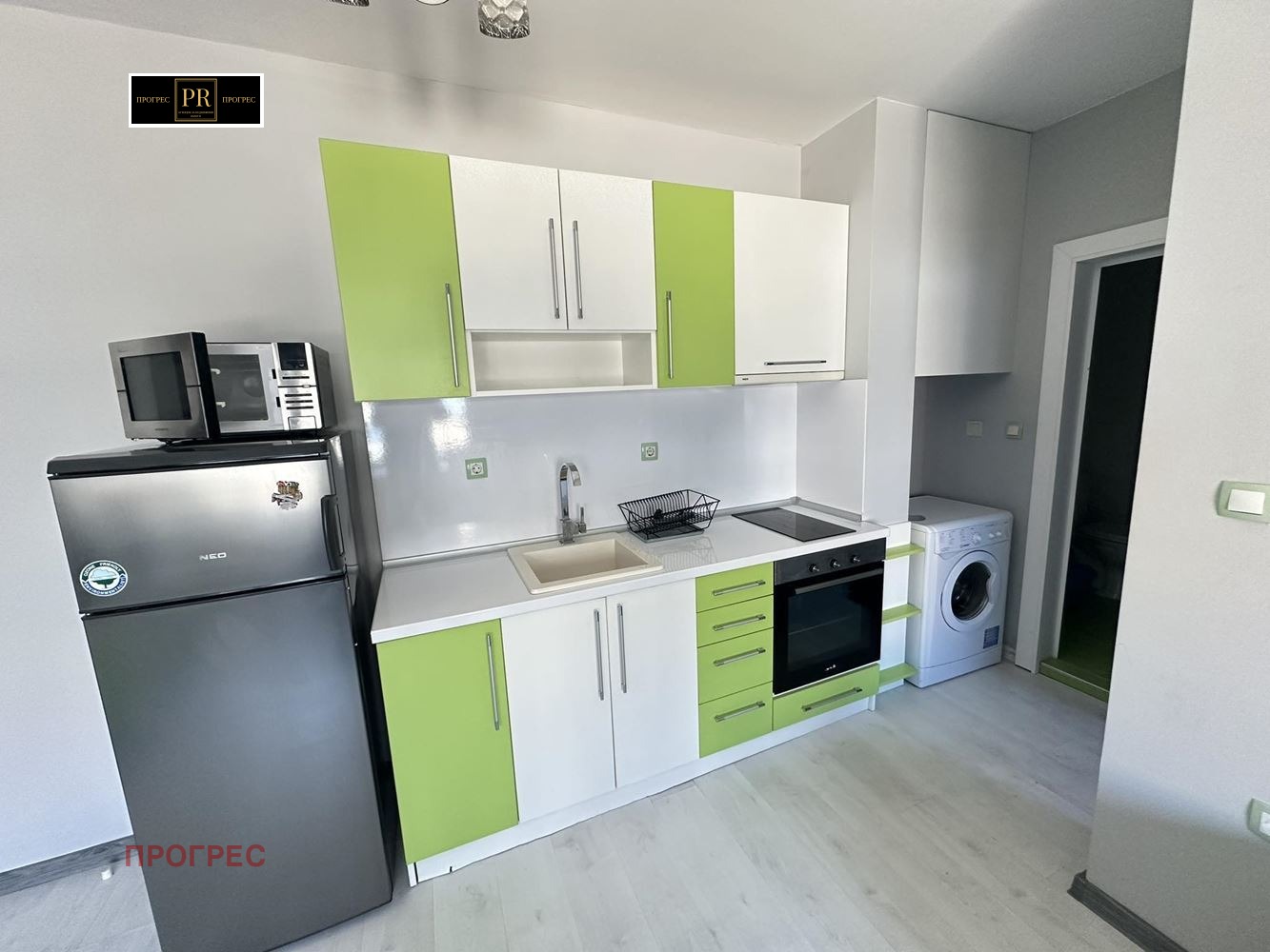 Светъл хол с кухненски бокс