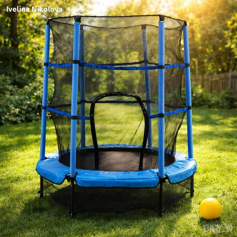 Мини батут с мрежа за безопасност – Компактен и забавен избор за деца → Обява 53647087