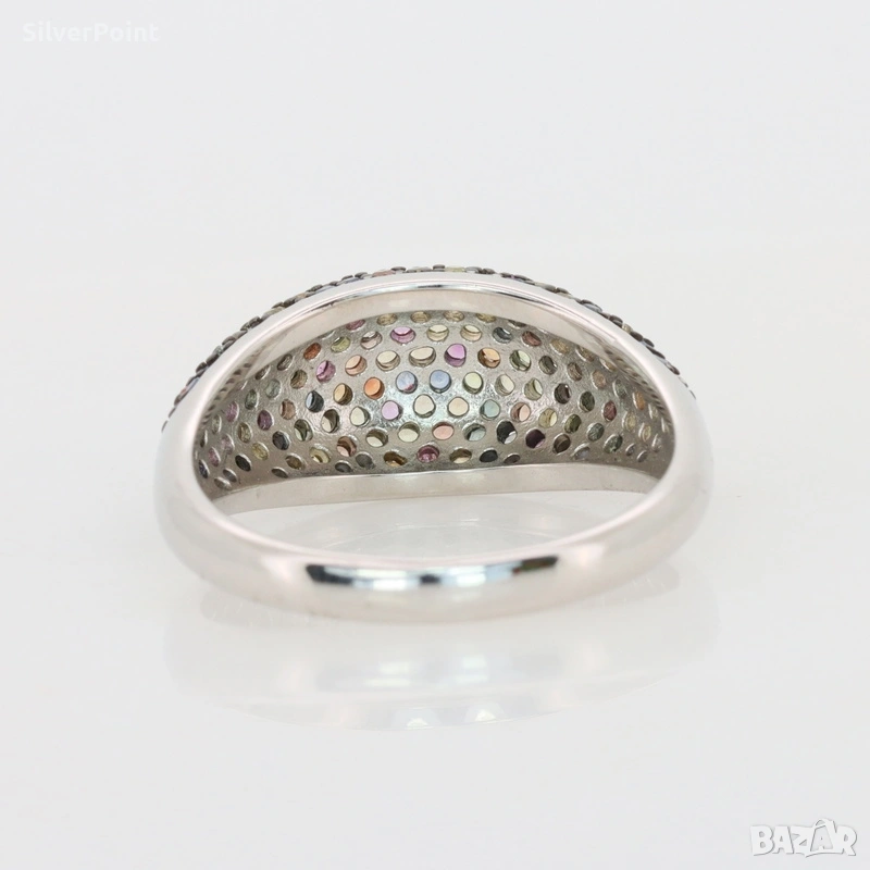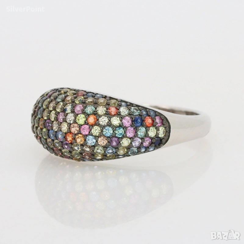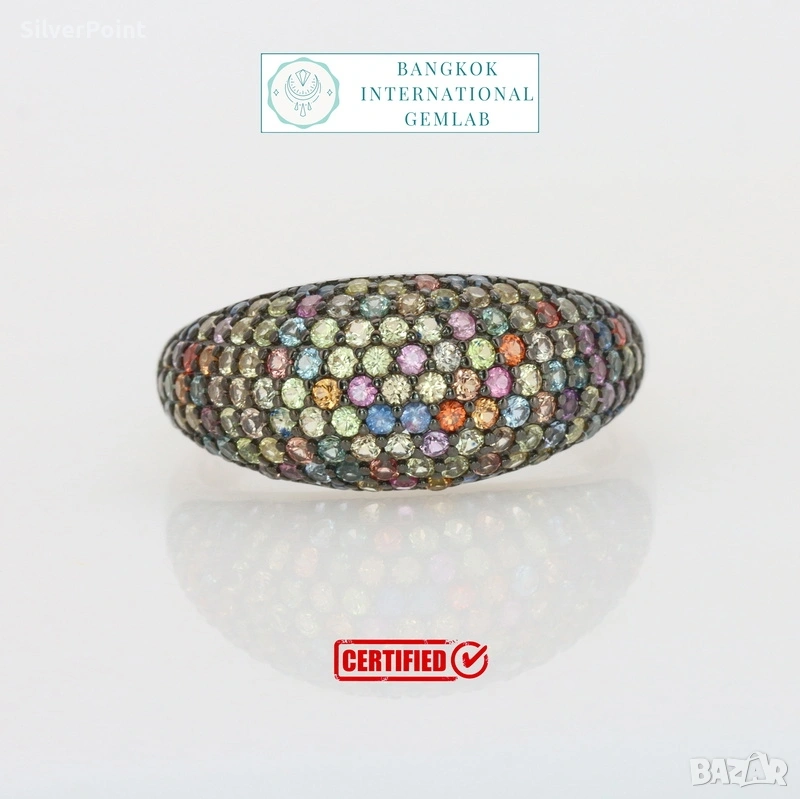 Сребърен пръстен с цветни Сапфири от Шри Ланка и сертификат → Обява 53647224