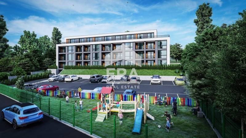 Сградата е изпълнена с модерна визия и висококачествени материали. Разположена е в тих и спокоен район, с отличен достъп и улично осветление. Сградата е в близост до основна пътна артерия, което я прави лесно достъпна и само на 10 минути с автомобил от центъра на града. В близост са разположени спирки на градки транспорт. В момента сградата е със степен на завършеност груб строеж - Акт 14, с монтирана дограма. Предстои да бъде въведена в експлоатация до края на 2026-та г. Има възможност за закупуване на подземни паркоместа на цени от 14000 евро. Разсрочена схема на плащане, според индивидуалните възможности на клиента.