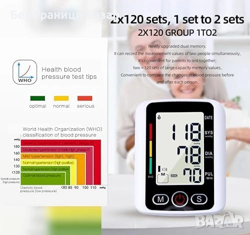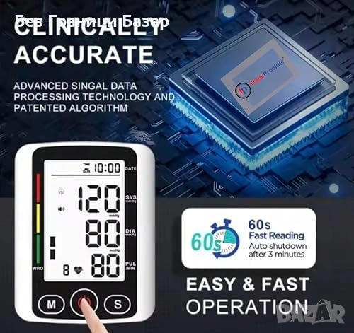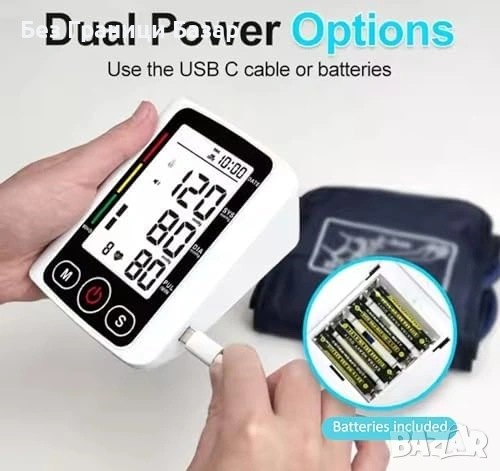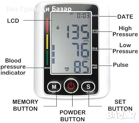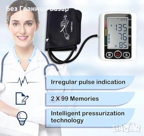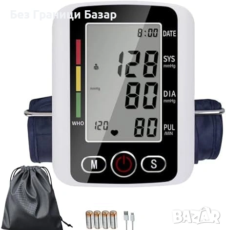 Нов Автоматичен апарат за кръвно за ръка, голям дисплей, памет, батерии