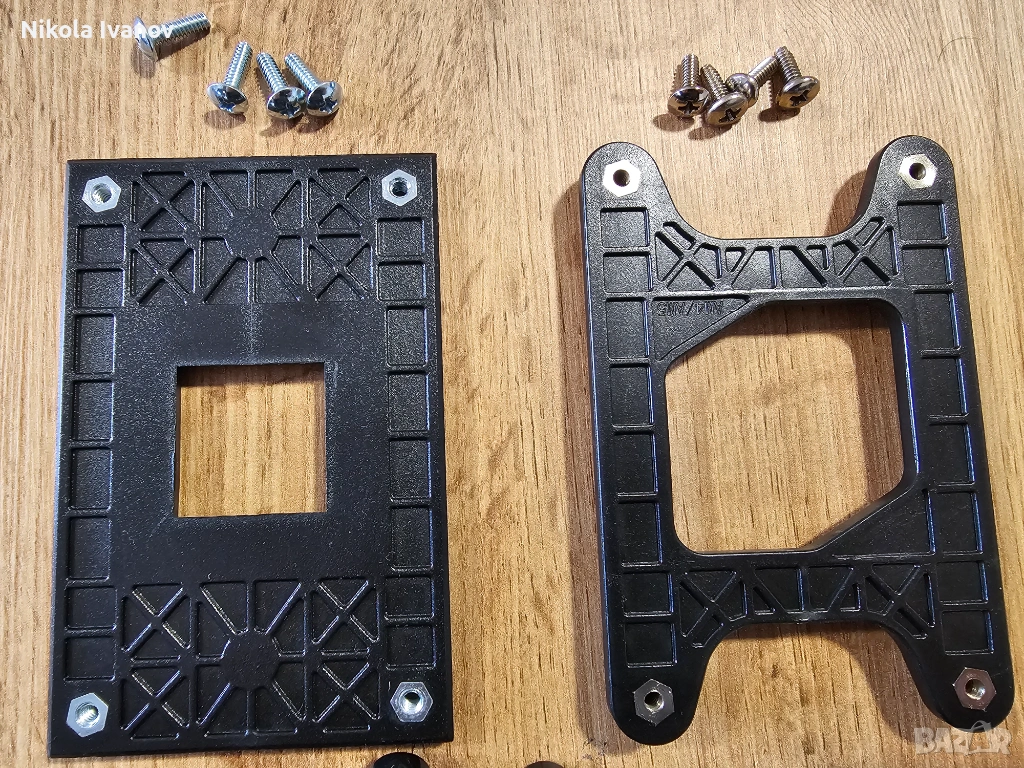 Държачи/Щипки (Retention brackets): Две пластмасови шини за горната страна. (използват се за монтиране на охладителя)
