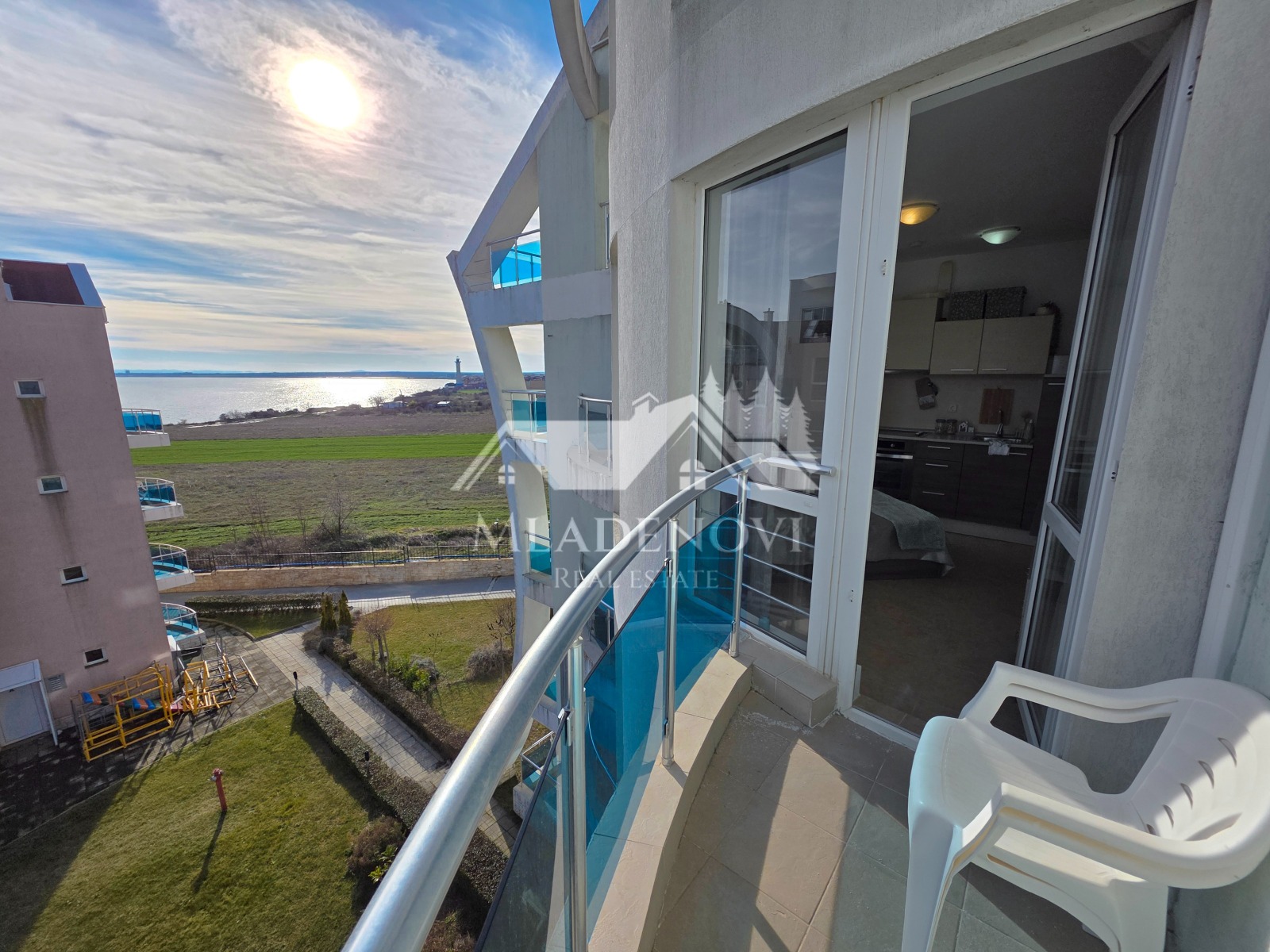 Имаме удоволствието да Ви предложим за продажба обзаведен едностаен апартамент с фронтална ГЛЕДКА МОРЕ, в комплекс от затворен тип в с. Равда. Комплексът се намира на ПЪРВА ЛИНИЯ до плажната ивица и в същото време, на тихо и спокойно място, с лесен достъп до плажа. За своите гости и собственици предлага редица удобства като: два басейна, детска площадка, ресторант, рецепция, фитнес, спа зона, библиотека, видеонаблюдение и паркинг. Комплексът е целогодишен. Самостоятелни партиди за ток и вода. Таксата поддръжка е 10.50 Евро на кв.м. с ДДС годишно. Апартаментът се състои от стая с кухненски кът, антре, две тераси, с красива гледка към морето и баня с тоалетна. Жилището е напълно обзаведено и оборудвано, в чудесно общо състояние. Изключително светло и слънчево. Агенцията съдейства за отпускане на ипотечен кредит за финансиране покупката на този имот, както и безплатно юридическо обслужване през целия процес на сделката.