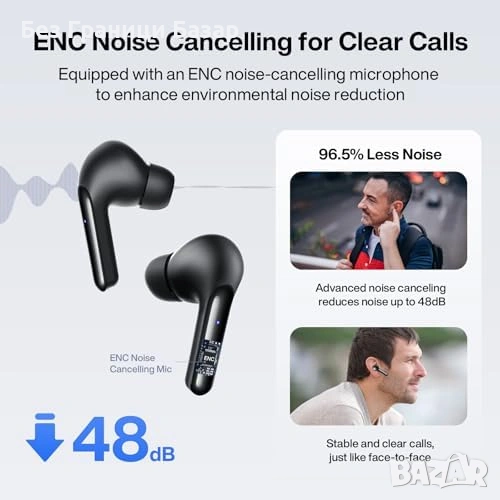 Нови Безжични слушалки Bluetooth 5.3 TWS HiFi бас ENC 4 мик IP7 с кутия за зареждане