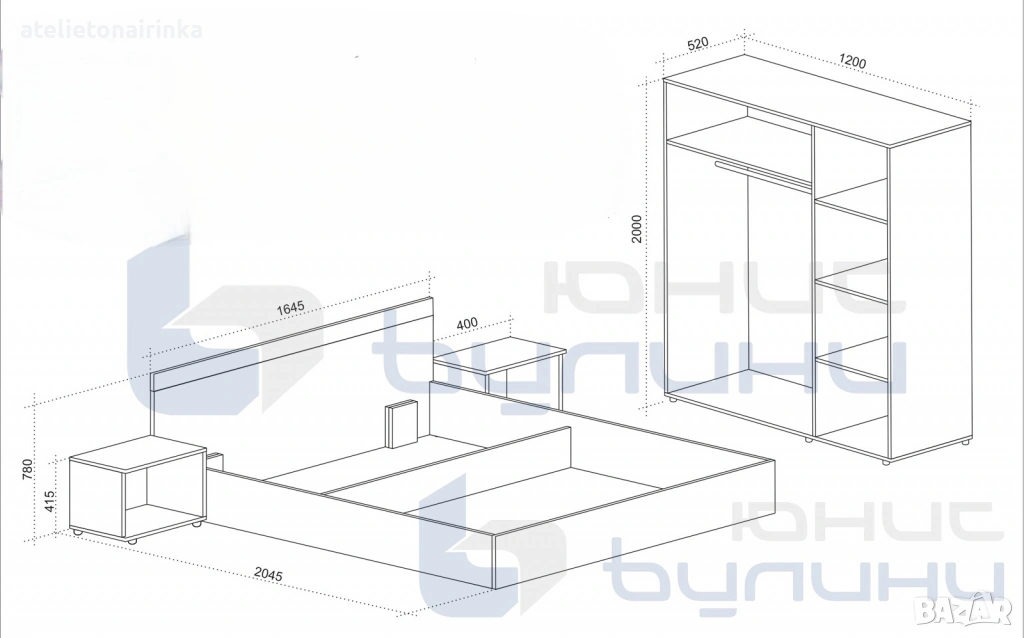 *Допълнително може да се поръча надстройка за гардероба+ 71 €( 138,86 лв);