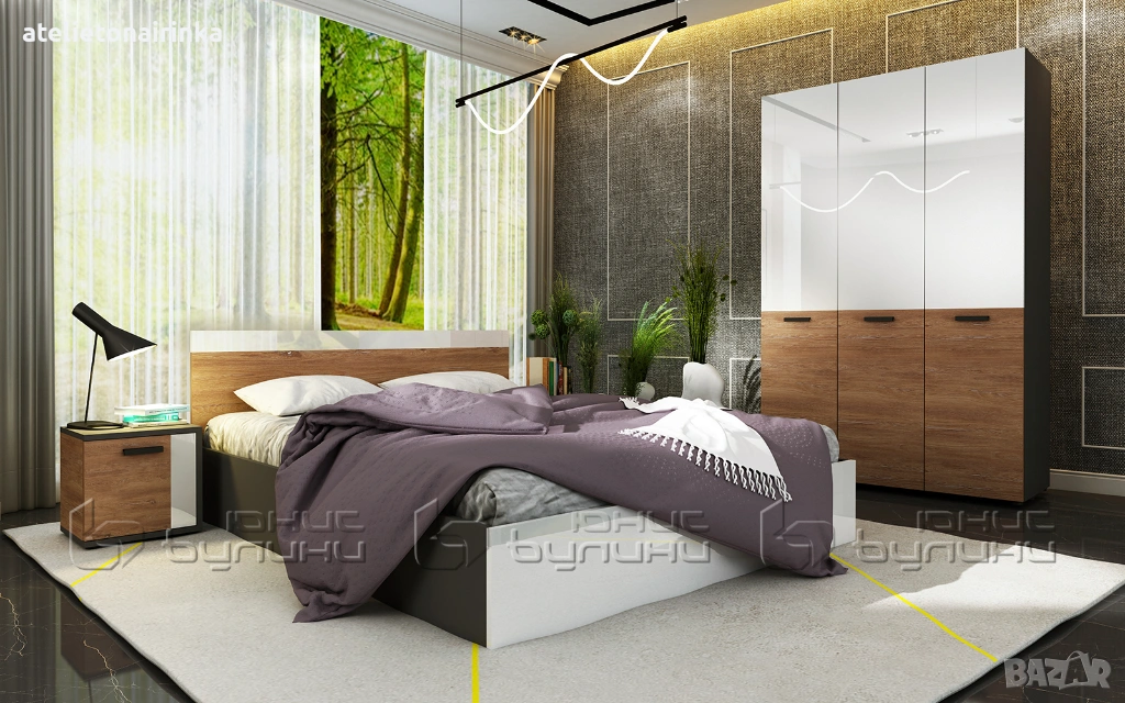 Спалня с 2 бр.нощни шкафчета: 244,5/ 204,5/ Н78 см;