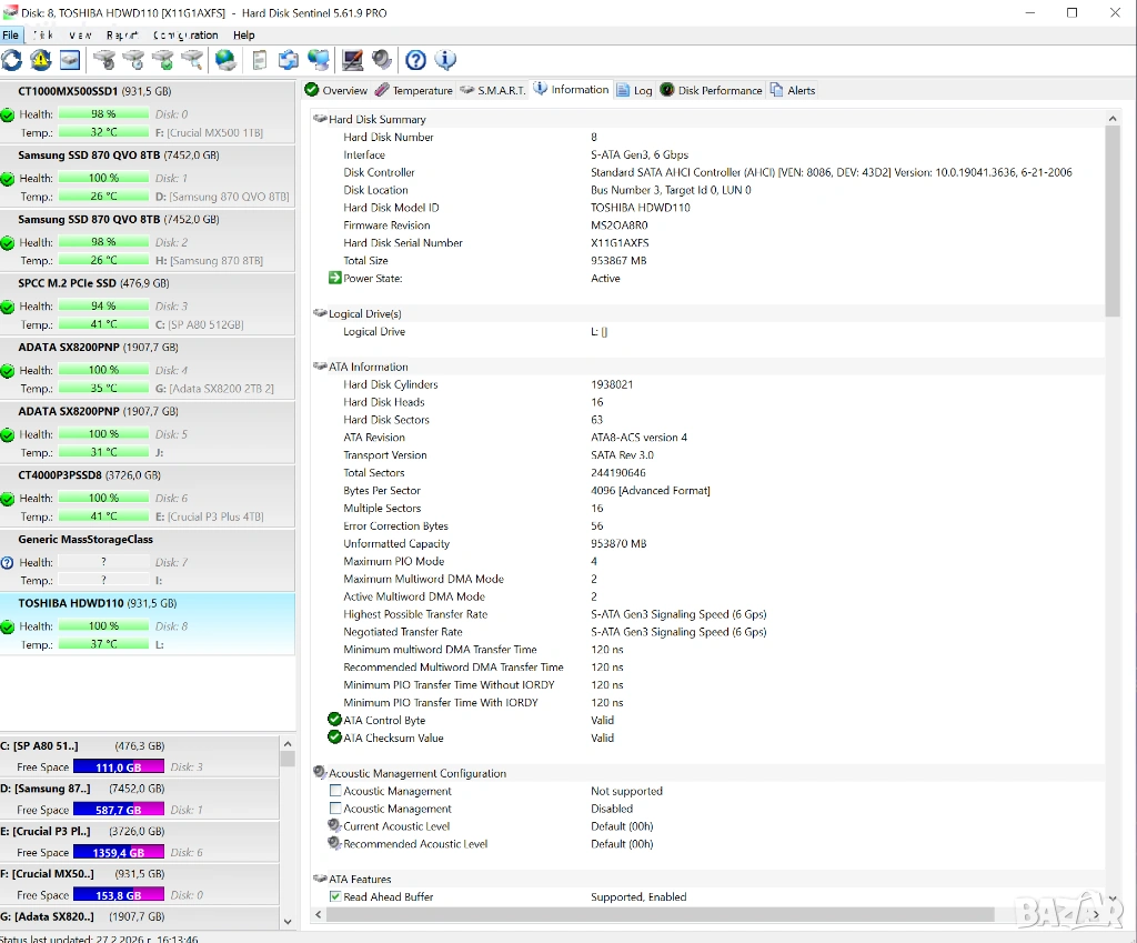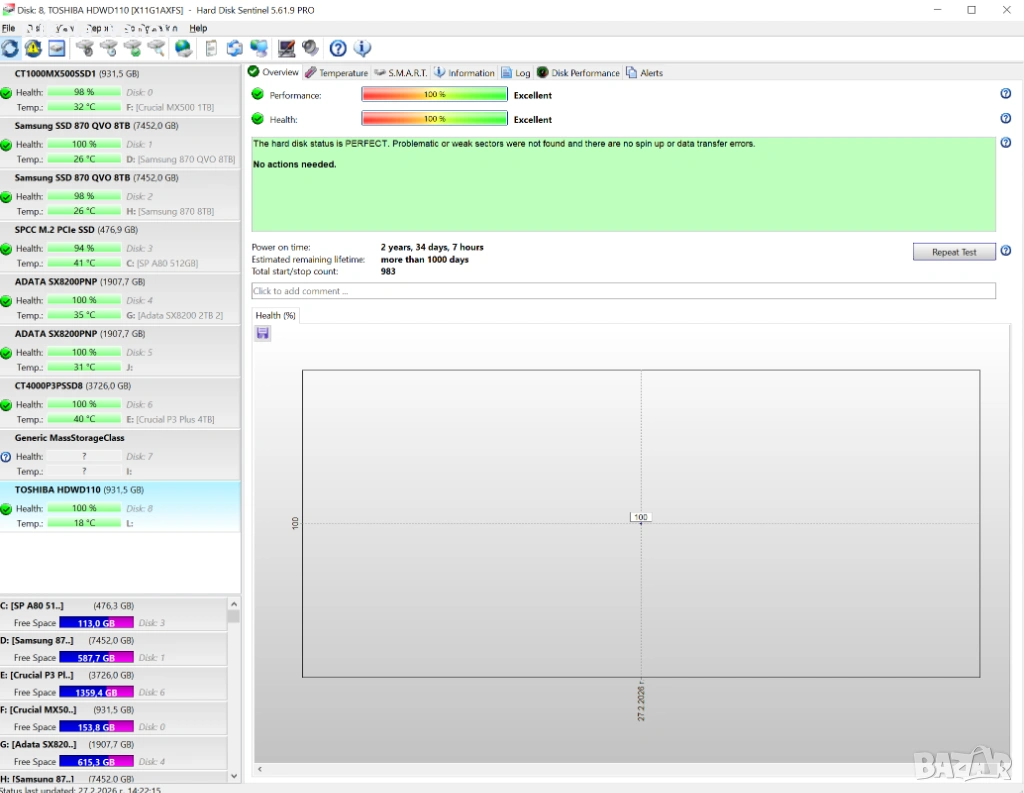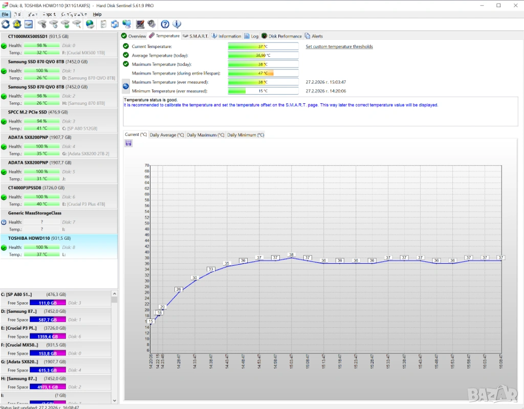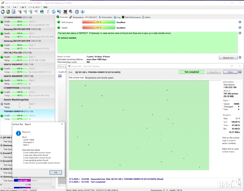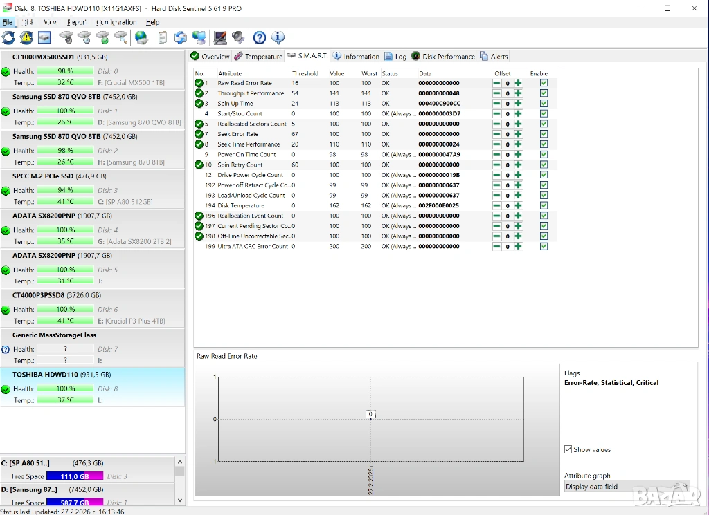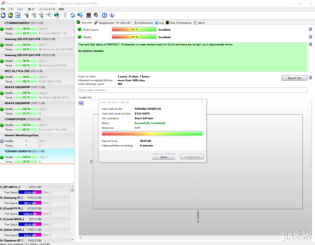S.M.A.R.T. статус: Всички параметри са в норма