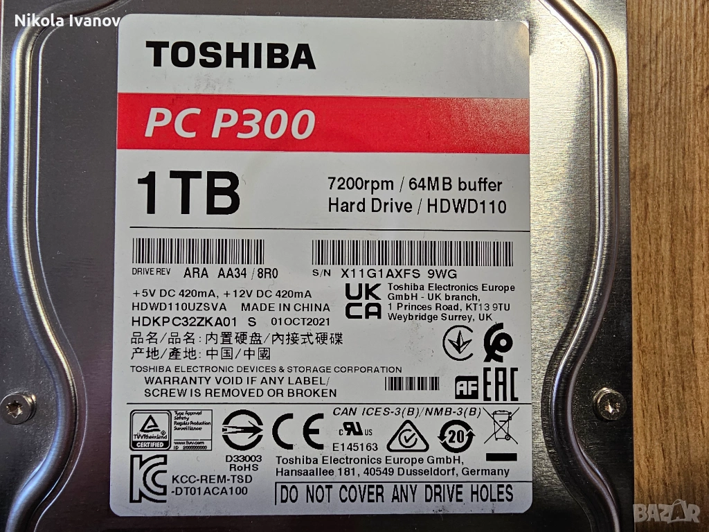 1TB 3.5 inch HDD Toshiba P300 HDWD110 | SATA | 100% Живот, Тестван! | хард диск | 7200 RPM, снимка 1 - Твърди дискове - 53647595 1TB 3.5 inch HDD Toshiba P300 HDWD110 | SATA | 100% Живот, Тестван! | хард диск | 7200 RPM, снимка 2 - Твърди дискове - 53647595 1TB 3.5 inch HDD Toshiba P300 HDWD110 | SATA | 100% Живот, Тестван! | хард диск | 7200 RPM, снимка 3 - Твърди дискове - 53647595 1TB 3.5 inch HDD Toshiba P300 HDWD110 | SATA | 100% Живот, Тестван! | хард диск | 7200 RPM, снимка 4 - Твърди дискове - 53647595 1TB 3.5 inch HDD Toshiba P300 HDWD110 | SATA | 100% Живот, Тестван! | хард диск | 7200 RPM, снимка 5 - Твърди дискове - 53647595 1TB 3.5 inch HDD Toshiba P300 HDWD110 | SATA | 100% Живот, Тестван! | хард диск | 7200 RPM, снимка 6 - Твърди дискове - 53647595 1TB 3.5 inch HDD Toshiba P300 HDWD110 | SATA | 100% Живот, Тестван! | хард диск | 7200 RPM, снимка 7 - Твърди дискове - 53647595 1TB 3.5 inch HDD Toshiba P300 HDWD110 | SATA | 100% Живот, Тестван! | хард диск | 7200 RPM, снимка 8 - Твърди дискове - 53647595 1TB 3.5 inch HDD Toshiba P300 HDWD110 | SATA | 100% Живот, Тестван! | хард диск | 7200 RPM, снимка 9 - Твърди дискове - 53647595 1TB 3.5 inch HDD Toshiba P300 HDWD110 | SATA | 100% Живот, Тестван! | хард диск | 7200 RPM, снимка 10 - Твърди дискове - 53647595 1/10