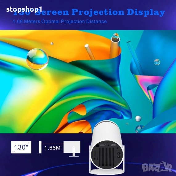 Регулируема проекция: Прожектирайте изображения между 40 и 130 инча, с възможност за регулиране на прожекционното разстояние между 1,2 и 4 метра, за да получите най-доброто изживяване при гледане.