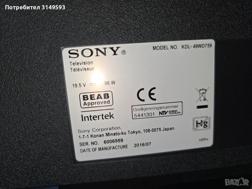 Телевизор Sony KDL 49WD759 → Обява 53647654