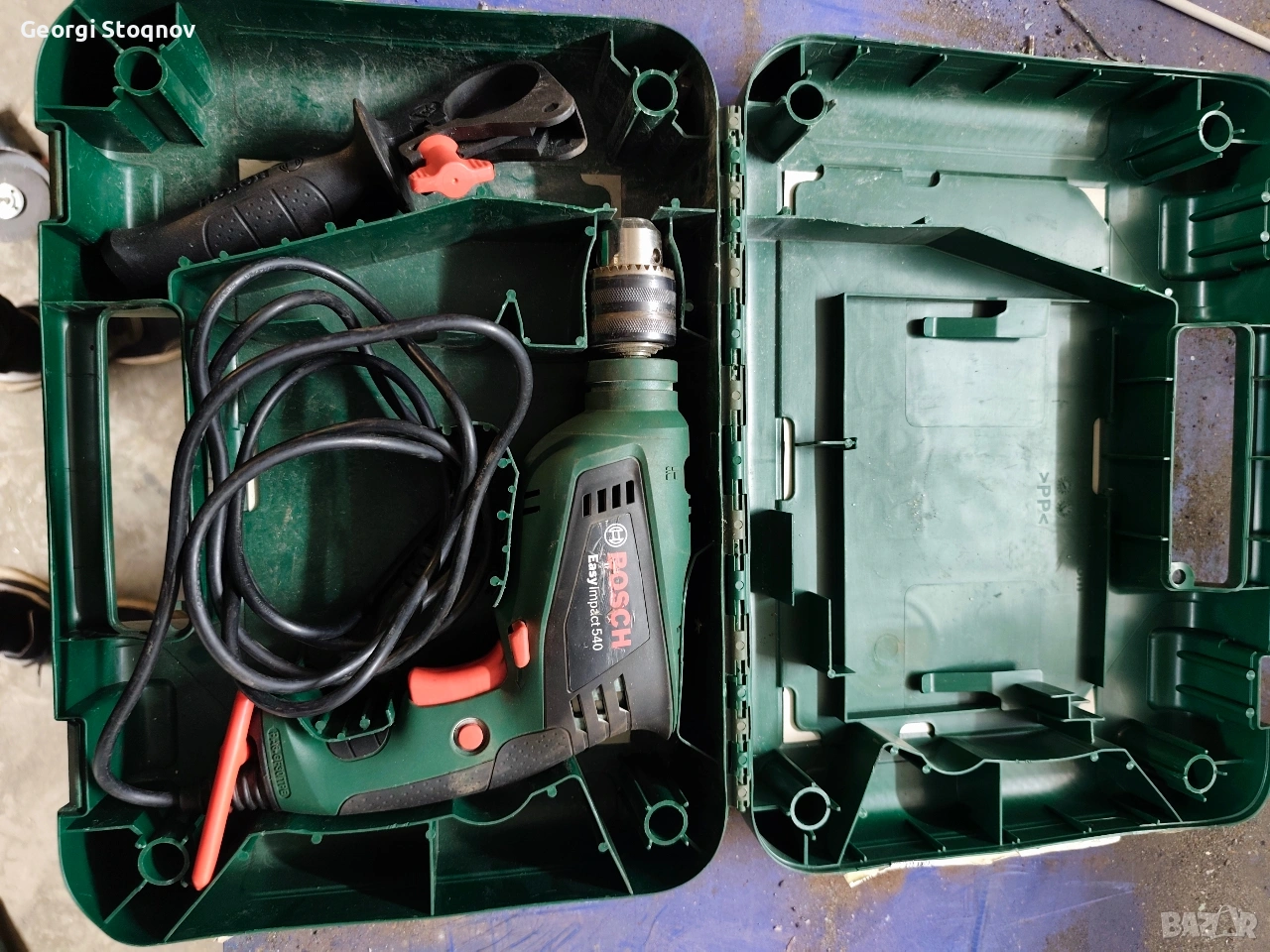Продавам запазена и напълно функционална ударна бормашина Bosch EasyImpact 540. Машината е част от зелената серия на Bosch, проектирана за лесна и удобна работа при домашни ремонти и DIY проекти. : Работи без проблем ! Модел: Bosch EasyImpact 540. Мощност: 550 W (подходяща за прецизно пробиване с удар и без удар) [20]. Патронник: Бързозатягащ патронник за лесна смяна на свредлата [20]. Функции: Регулиране на оборотите и функция реверс (ляво/дясно въртене) [20 Цена:35 ев(коментар)