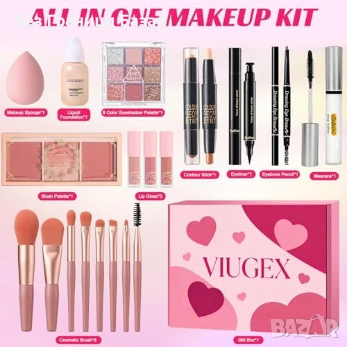 Включени аксесоари: четки за грим, гъба за грим и подаръчна кутия