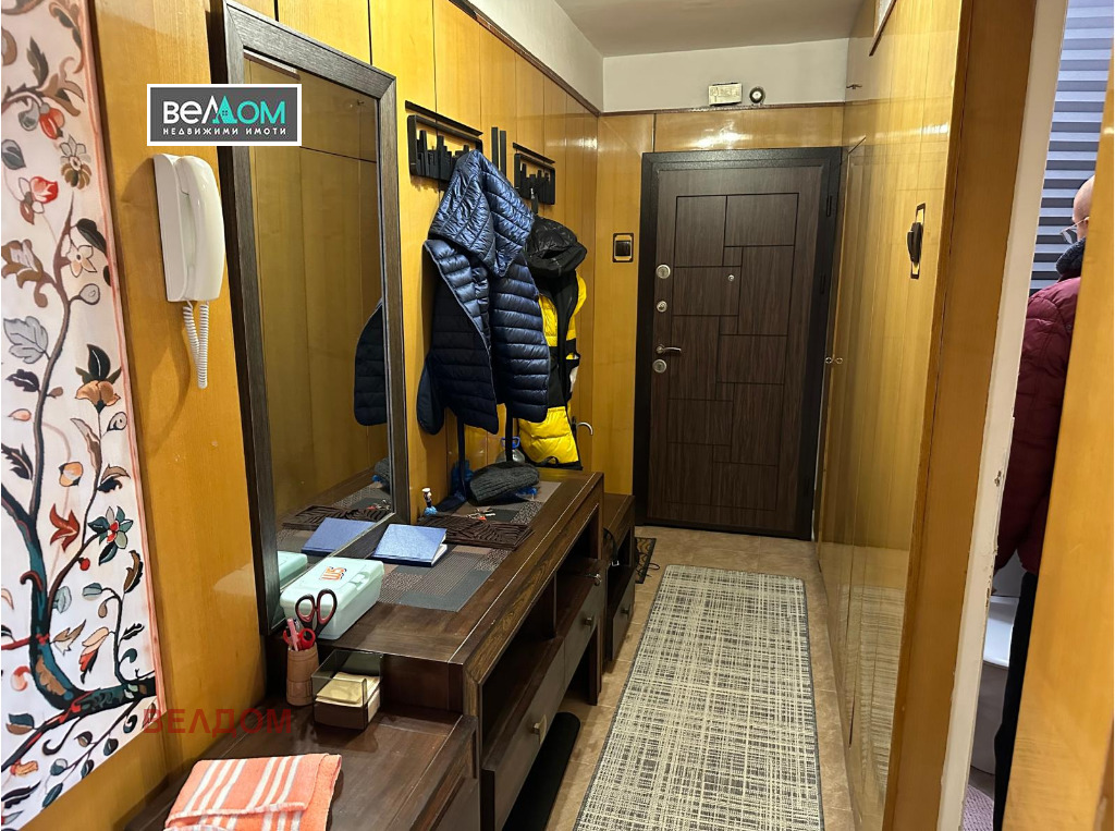 Апартаментът се намира на 5-ти етаж от 8, изцяло покрит, топъл, с оптималното изложение югоизток/северозапад, гарантиращо целодневно слънцегреене. С асансьор, след ремонт. Състои се от дневна 17,5 м2, до нея спалня родители 17,5 м2 с излаз от двете стаи на обща тераса и гледащи на югоизток. От другата страна са разположени втора по-малка спалня, кухня-трапезария с усвоена тераса, баня, отделно тоалетна и коридор с вграден гардероб. Към апартамента има изба и идеални части от земята. Дограмата навсякъде е сменена с PVC, северозападната част на апартамента е топлоизолирана, апартаментът е напълно обзаведен с всичко необходимо, в добро състояние и практически готов за нанасяне. Общите части на входа са добре поддържани, нов асансьор, контрол на достъпа. Площта на апартамента по старата наредба е 79,86 м2, което по днешната, за сравнение, би отговаряло на не по-малко от 110 м2.