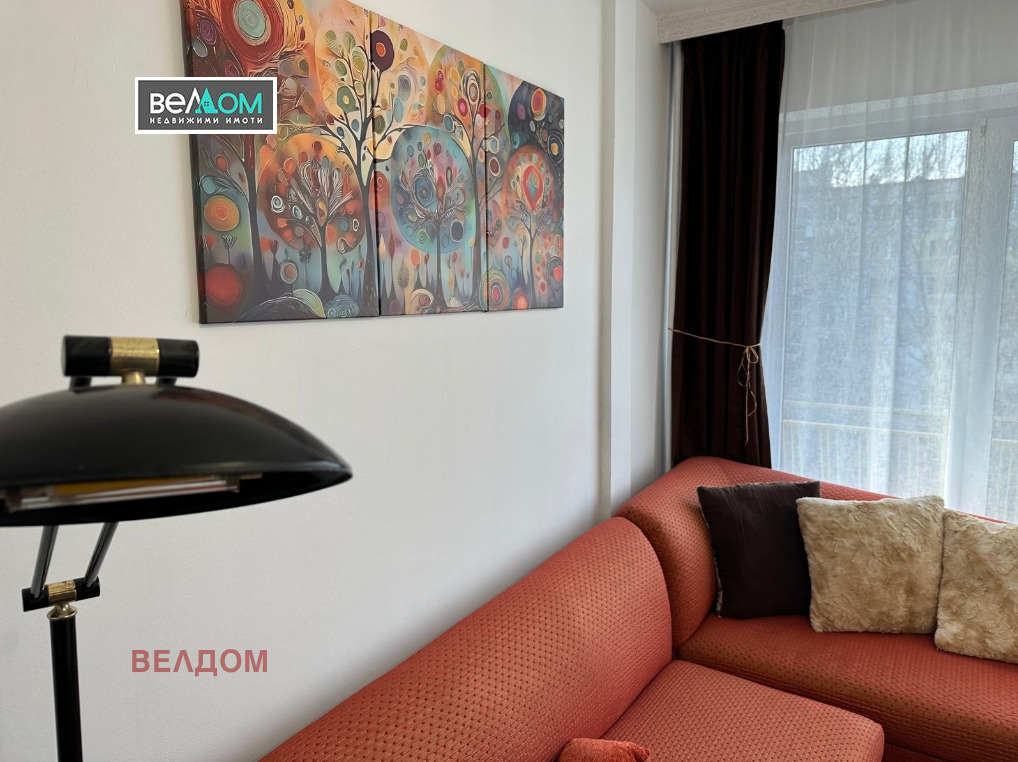 Агенция ВЕЛДОМ дава под наем 4- стаен апартамент в района на Първа езикова гимназия, на границата между Цветен квартал и кв. Левски. Апартаментът е в сграда панелно строителство, доказало се в годините с много положителни качества като здравина, устойчивост на земетръс, функционално разпределение-широки и светли стаи с правилни форми, отделни санитарни възли, градоустройствено с големи междублокови пространства, запълнени с богато парково озеленяване, детски площадки, зони за фитнес на открито и рекреация усещане за въздух и простор. В близост: детски ясли и градини, Основно училище, Езикова Гимназия, различни магазини и пр. търговски обекти. Свободно паркиране.