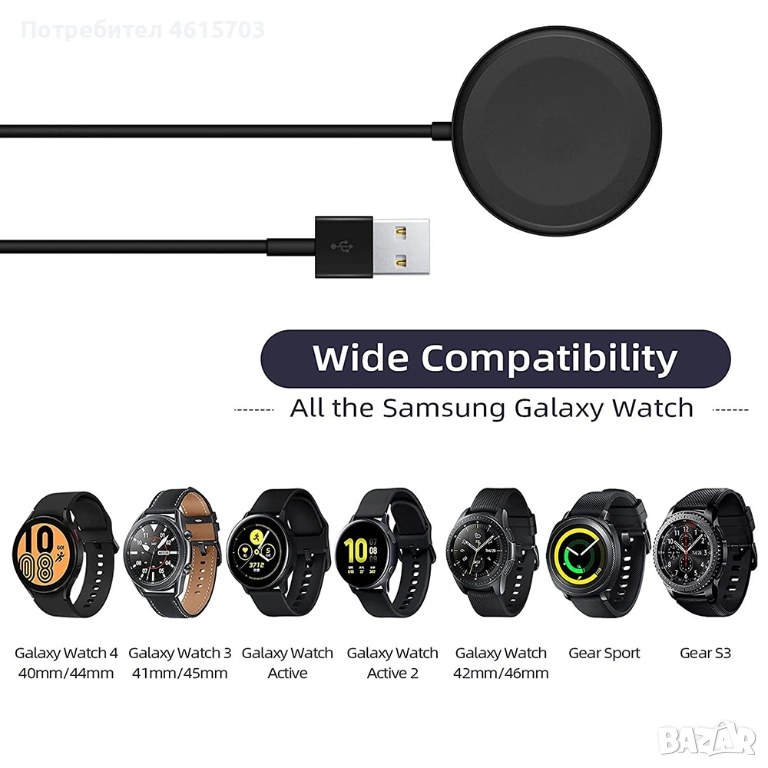 Кабел за Apple watch 8,7,6,5,4,3,2,1,SE,Ultra,Galaxy Watch Activ1,2,3, Watch 3,4,5,6 series → Обява 53648319