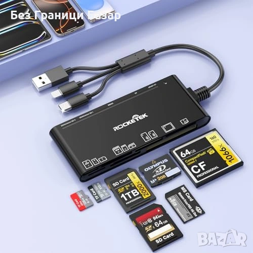 адаптер за карти: SD, microSD/TF, xD, MS, CF