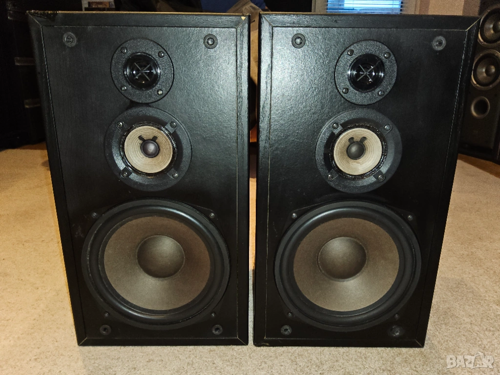 Средночестотен високоговорител: 100 мм конус; Високочестотен високоговорител: куполен високочестотен високоговорител; Мощност (номинална/музика): 85 W / 110 W