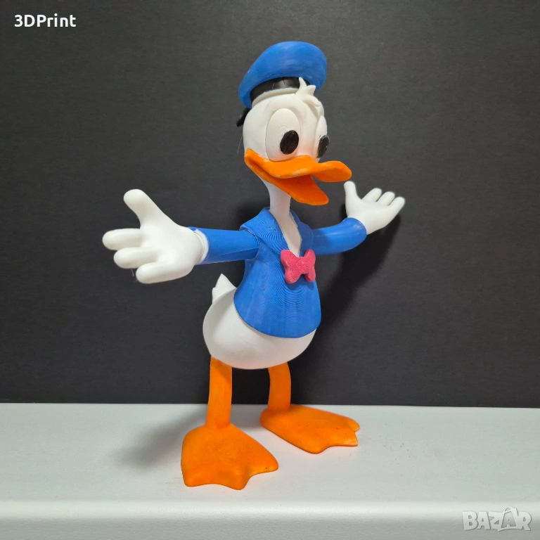 Последните 3 снимки показват пример как може да бъде оцветена фигурката – класическият вариант на Доналд Дък в синьо, бяло и оранжево.