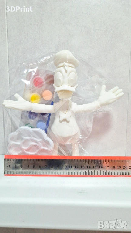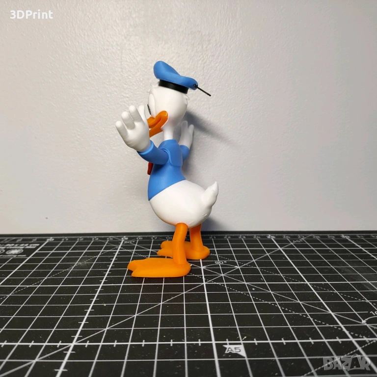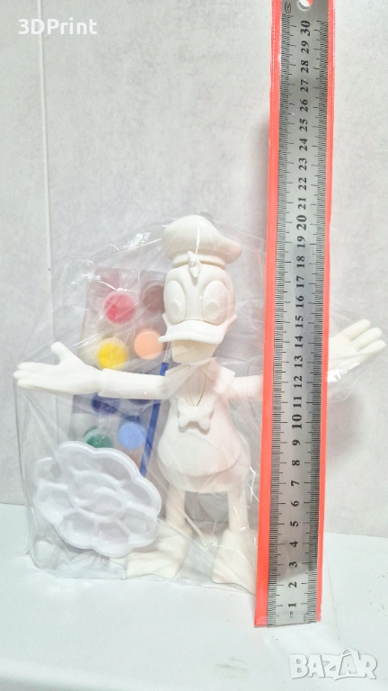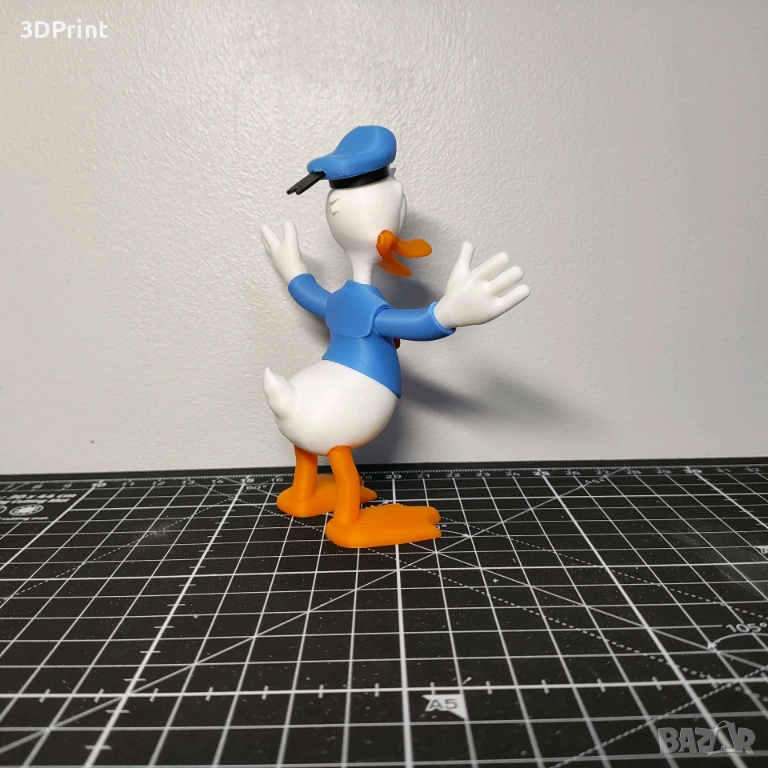Последните 3 снимки показват пример как може да бъде оцветена фигурката – класическият вариант на Доналд Дък в синьо, бяло и оранжево.