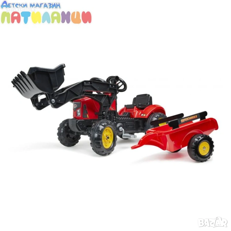 Представяме Ви детски багер специално проектиран за деца на възраст от 2 до 5 години. Благодарение на предната лопатка, детето ви ще може да копае. Можете лесно да прикачите ремаркето, което ще позволи транспортирането на пясък, листа, пръст и камъни от единия край до другия. С него детето ще може да се изяви като градинар, а също така и като фермер, детето ви ще развие самостоятелност и въображение. Играта на открито никога не е била толкова забавна.