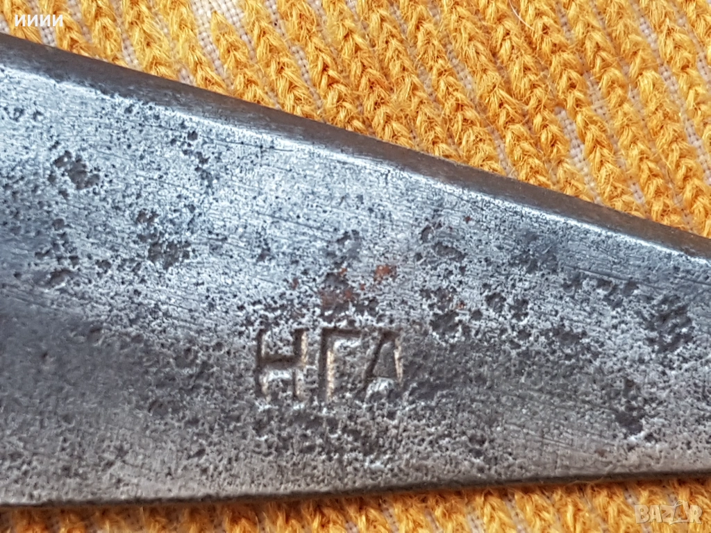 Кована и закалена, стегната без луфт, реже отлично. С майсторски печати на двете остриета.